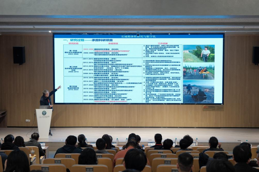 天津大学建筑学院教授、中国民居建筑大师张玉坤发表主题演讲:中国长城整体性研究与数字化。他介绍了长城遗产数字化保护的研究过程、关键技术与实践路径,强调文化遗产数字化在实现历史真实性、完整性保护中的重要作用。他提出,通过系统整体研究、高精度扫描、数据建模与可视化技术的结合,可实现文化遗产的“整体保护”与“动态再现”,推动遗产保护从静态档案走向活态传承