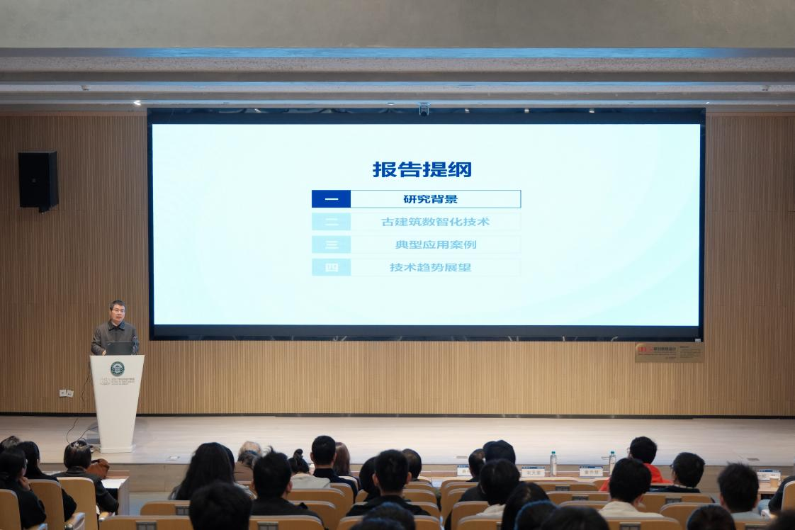武汉大学遥感信息工程学院胡庆武教授发表主题演讲:古建筑数智化技术及应用。他提出“空地融合、内外一体”的测绘理念,展示了自主研发的多模态SLAM系统,并结合潮州广济桥、武当山两仪殿等文保建筑案例,说明数智化技术在古建筑的实际运用。胡教授指出,数字技术的真正价值在于“让古建筑被看见、被理解、被传承”。