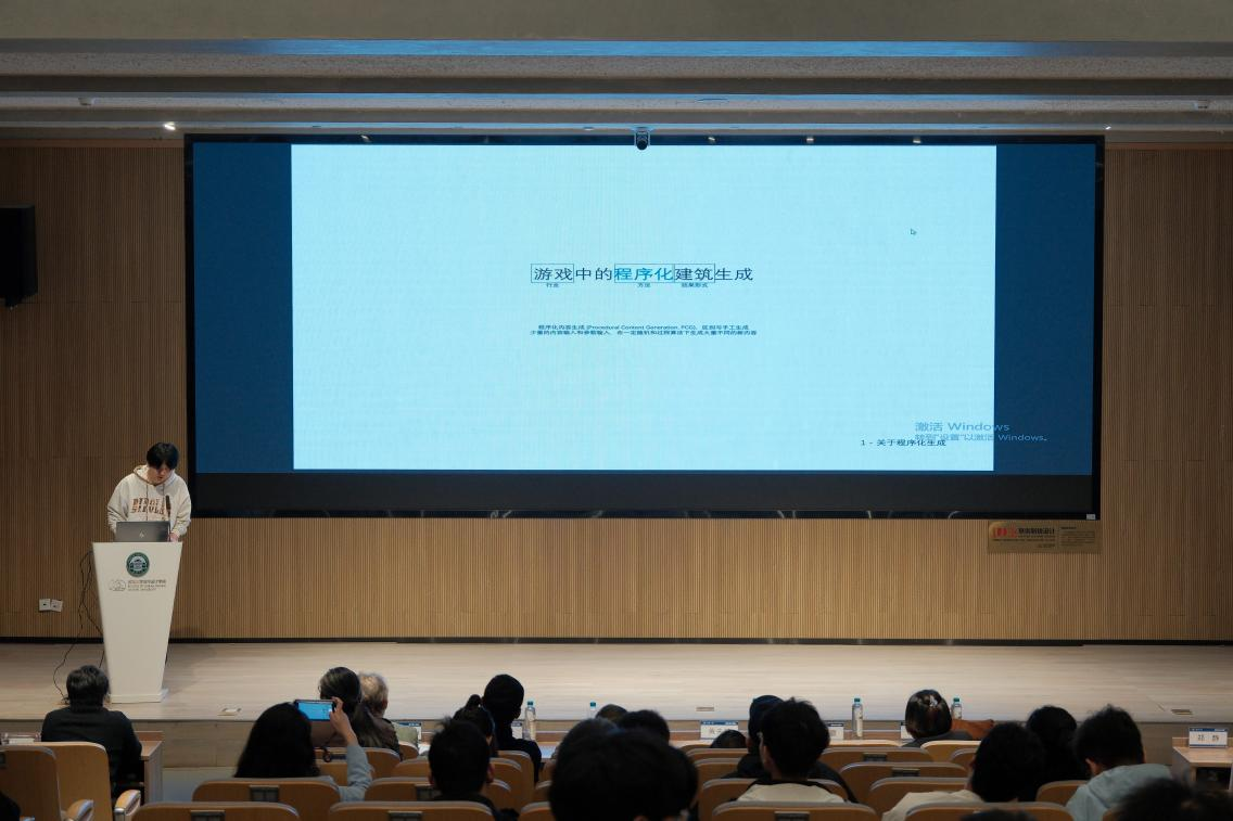 腾讯公司北极光工作室宋天意发表主题演讲:游戏中的程序化建筑生成他展示了程序算法在虚拟空间构建中的应用。他介绍了院落、街区及城市级别的生成机制,提出“虚拟建造”不仅是娱乐产品,更是建筑设计思维的延伸,启发了关于“虚拟与现实共创城市”的跨界讨论。