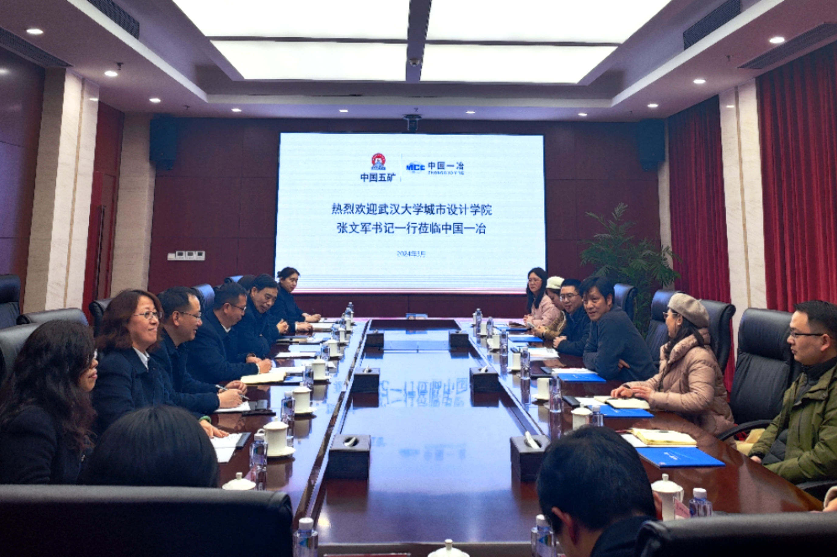 我院党委副书记李琦、余亮、规划系教授谢波、院团委书记陈曦、本科办副主任胡晓兰、院团委副书记叶婧杰;中国一冶总部相关职能部门以及交通公司、湖北公司、设计院相关人员参加会见。