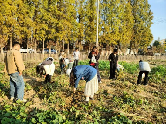 劳动教育实践,体验共同缔造。在劳动教育实践环节,全体党员亲身参与了农业农耕项目实践,大家拿起农具体验了种植包菜、收割高粱、挖取红薯等过程。在种植包菜项目实践中,全体党员通过团结协作,共同完成了菜苗获取、运送、种植、定根等工作,以实际行动学习并感悟了决策共谋、发展共建、建设共管、效果共评、成果共享。这一实践不仅锻炼了学生们的动手能力,也激发了大家对共同缔造理念的深入思考。