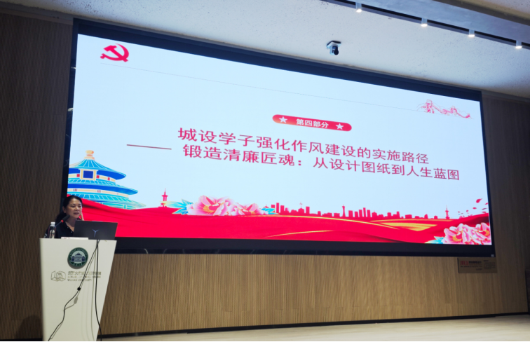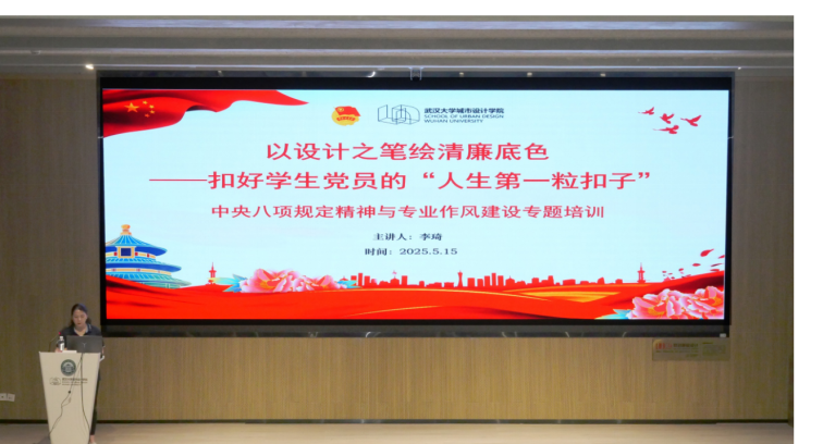 为深入贯彻中央八项规定精神学习教育,落实立德树人根本任务,持续深化作风建设,切实增强学生党员廉洁自律意识,2025年5月15日下午,城市设计学院党委副书记李琦以《以设计之笔绘清廉底色——扣好学生党员的“人生第一粒扣子”》为题,于学院报告厅为全体学生党员讲授深入贯彻中央八项规定精神学习教育专题党课。