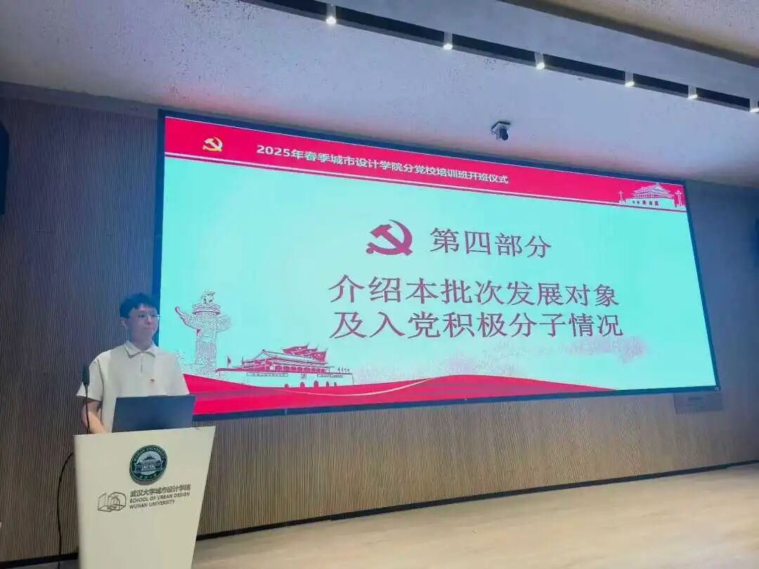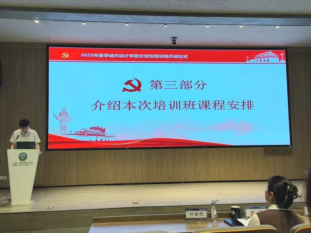 为深入学习宣传贯彻党的二十大和二十届一中、二中、三中全会精神,进一步加强党员队伍建设,严把党员发展“入口关”,城市设计学院于2025年4月17日下午在学院学术报告厅展开发展对象及入党积极分子培训班,系统学习党的理论知识,强化党性修养,帮助大家进一步端正入党动机,明确使命担当,在学思践悟中坚定理想信念,在知行合一中锤炼政治品格,以实际行动向党组织靠拢。
