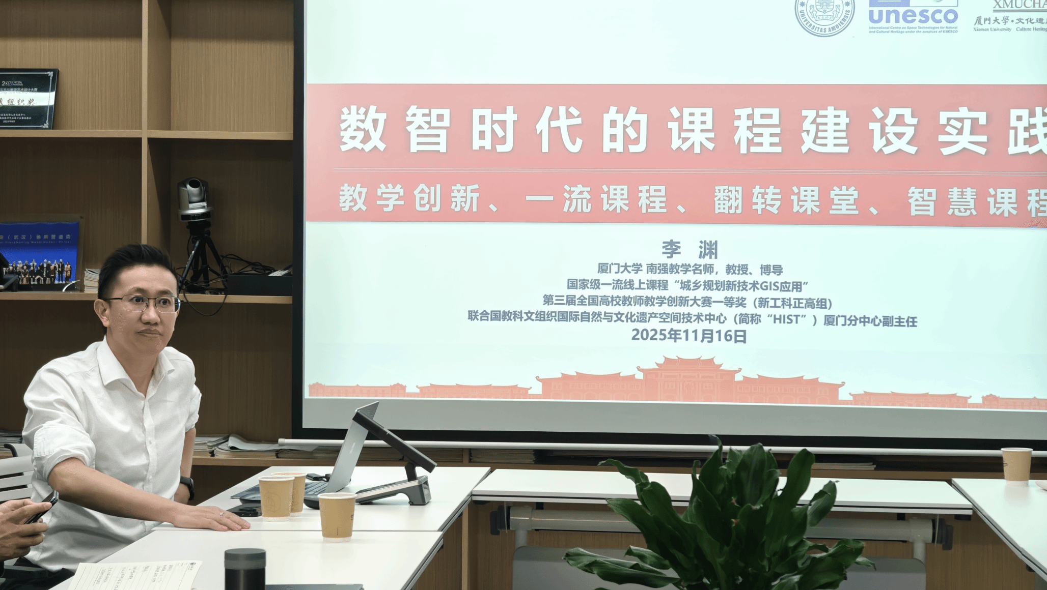本次活动特邀厦门大学建筑与土木工程学院教授、博导李渊主讲《数智时代的课程建设实践》。作为厦门大学南强教学名师、国家自然科学基金地球科学部学科评审组会议评审专家、第三届全国高校教师教学创新大赛一等奖得主,李渊教授深耕GIS+交叉学科领域,在数智教学创新、元宇宙教学平台开发等方面成果丰硕。