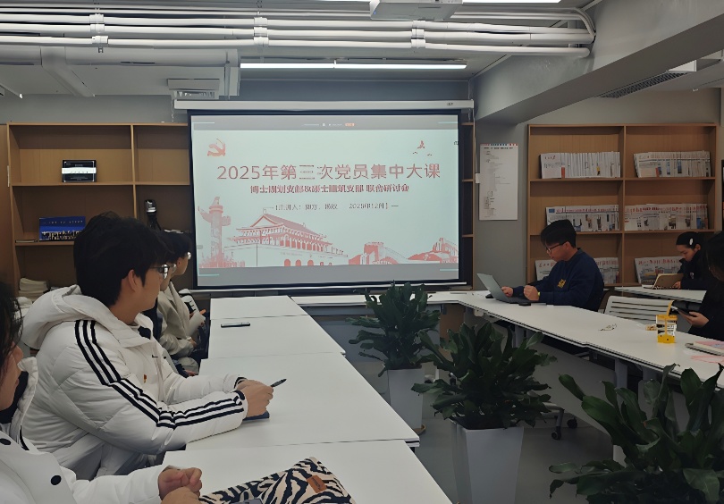 2025年12月26日上午,硕士建筑党支部在全校党员培训集中大课后组织开展交流研讨会,通过课程回顾、心得分享等形式,进一步深入学习贯彻党的二十届四中全会精神,进一步学习领会习近平总书记关于党性的重要论述。
