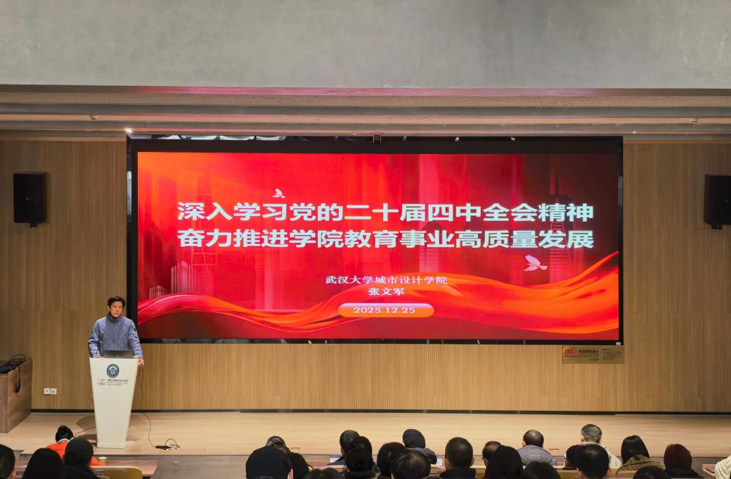 (通讯员:尚福瑞、李君楠)为了深入学习贯彻党的二十届四中全会精神,准确把握全会对教育事业高质量发展的战略部署,切实把全院师生思想和行动统一到党中央的决策部署上来。12月25日,城市设计学院党委书记张文军以“深入学习党的二十届四中全会精神,奋力推进学院教育事业高质量发展”为题,为全院师生党员讲授专题党课。学院党委副书记李琦主持报告会。