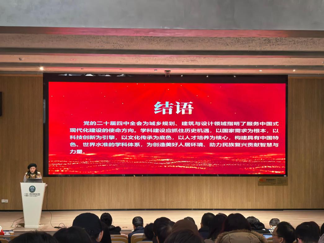 党课引发师生热烈反响,大家纷纷表示,将立足本职岗位,主动对接国家战略需求,以学科创新、人才培养等实际成效,为学院高质量发展和中国式现代化建设贡献力量。下一步,城市设计学院将以党的二十届四中全会精神为遵循,主动将学科发展置于国家战略全局中系统谋划,在教育强国建设中展现新担当、实现新突破。