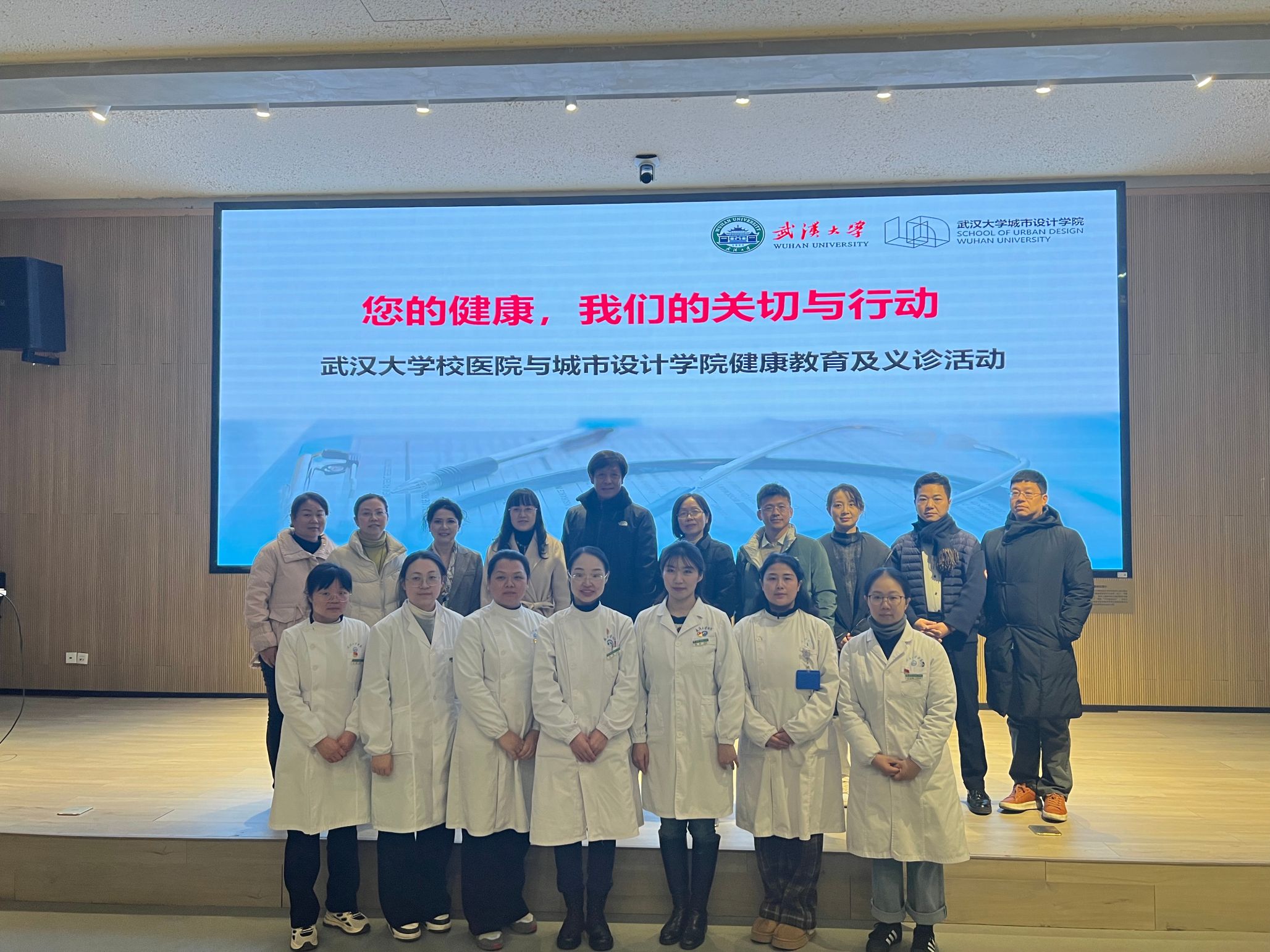 12月12日下午,城市设计学院与武汉大学校医院携手举办了以“您的健康,我们的关切与行动”为主题的健康教育与义诊活动。校医院党委书记周玉霞带队,一行10余位专家及医务人员参加了此次活动。学院党委书记张文军、党委副书记、工会主席李琦出席活动。
