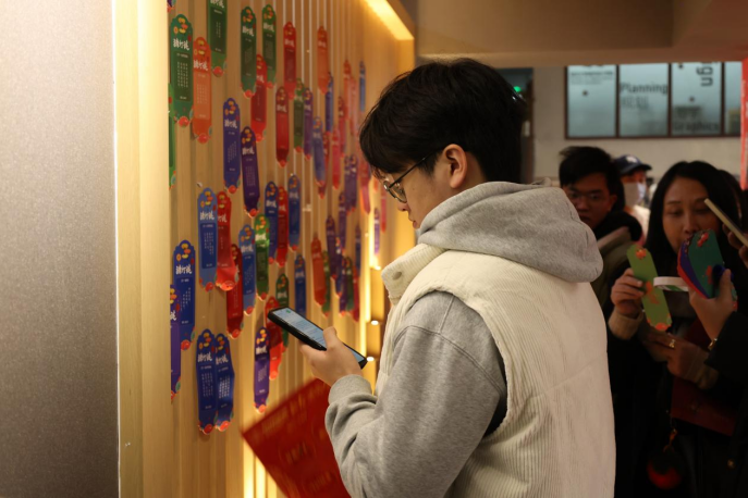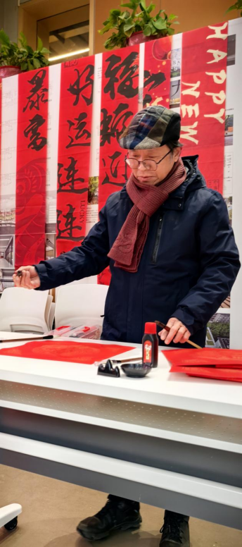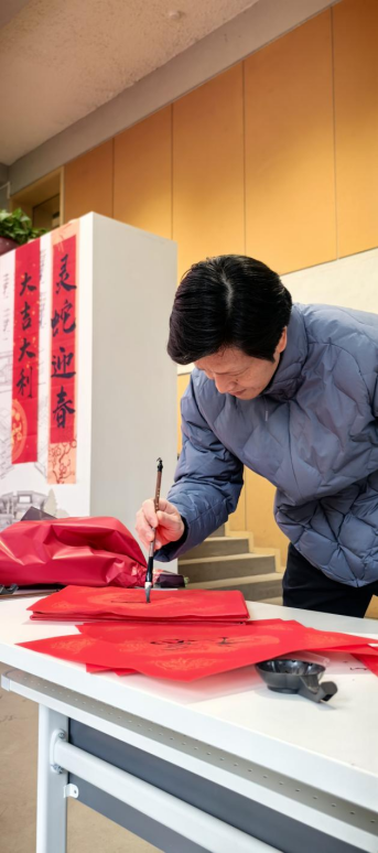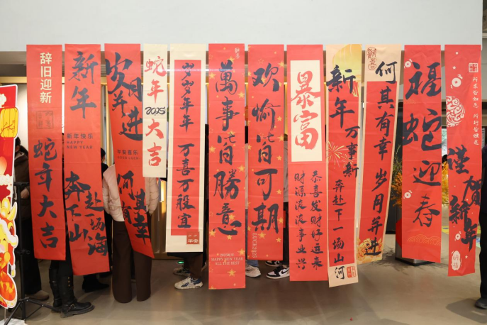 西厅的 3 个传统文化体验项目,带领师生穿越千年时空。手写春联摊位前,墨香四溢,大家挥毫泼墨,书写新年的祝福,将美好的愿景寄托于笔端;画折扇区域,师生们在扇面上精心绘制,将传统与现代的元素巧妙融合,展现出独特的艺术风采;剪窗花摊位则充满了民俗的智慧与喜悦,红纸在手中翻飞,剪刀起落间,一幅幅精美的窗花跃然纸上,为新年增添了浓浓的喜庆氛围。这些文化体验项目不仅让大家领略了传统文化的魅力,更激发了大家的创造力与想象力。