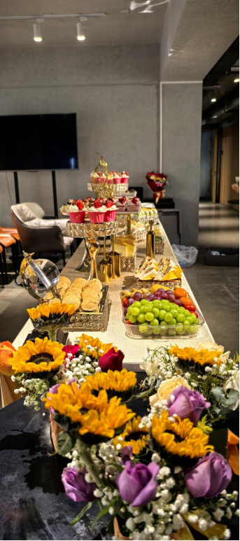 在游园的旅途中,茶歇摊位成为了师生们放松身心的温馨港湾。香茗与点心的搭配,为忙碌的身心带来了片刻的宁静与满足。大家围坐在一起,品茶聊天,分享游戏中的趣事与收获,让游园会的欢乐氛围在茶香与笑语中弥漫开来。