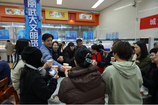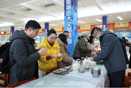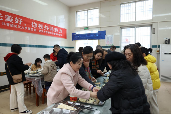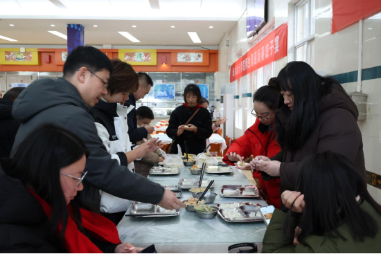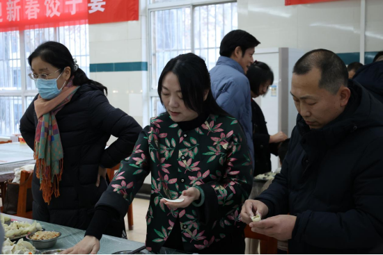 包饺子的过程中,师生们还发挥创意,包出了各种形状独特的饺子,如元宝形、花朵形等,寓意着新的一年财源广进、生活如花般美好。大家相互展示自己的“作品”,引得阵阵欢笑与赞叹,整个食堂充满了欢乐与活力。