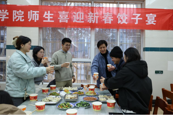 饺子宴现场还准备了丰富的配菜与饮料,让大家在享受美味的同时,也能感受到学院的贴心与关怀。大家在欢声笑语中举杯共饮,共同祝愿新的一年身体健康、学业进步、工作顺利,为新年的到来增添了更多的喜庆与祥和。