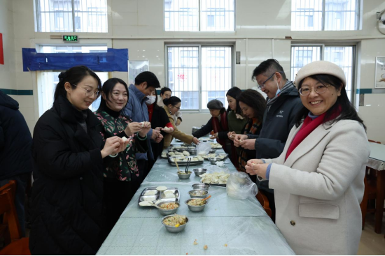 来到现场,师生们分成多个小组,围坐在一起,热火朝天地包起了饺子。大家手法各异:有的手法娴熟,包出的饺子个个饱满圆润;有的虽稍显笨拙,但包出的饺子也别具风味。现场欢声笑语不断,师生们一边包饺子,一边分享着生活中的趣事与新年的愿望,气氛温馨而融洽。