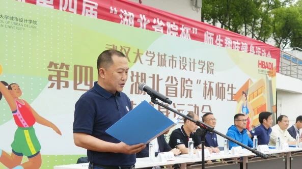 接下来,由湖北省建筑设计院有限公司党委委员、纪委书记桂军致辞。他回顾了双方在红莲湖大数据产业园等重大项目与科研课题中的密切协作,肯定了校企合作在人才培养、技术创新和行业发展中的关键作用。他表示,此次运动会是双方深厚合作基础上的又一次深入联动,期待以此为契机,持续拓展合作广度与深度,在实习实训基地建设、科研课题攻关、人才梯队培养等方面加强协同,携手打造产教融合新典范。