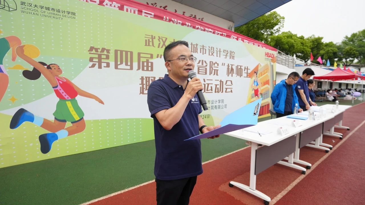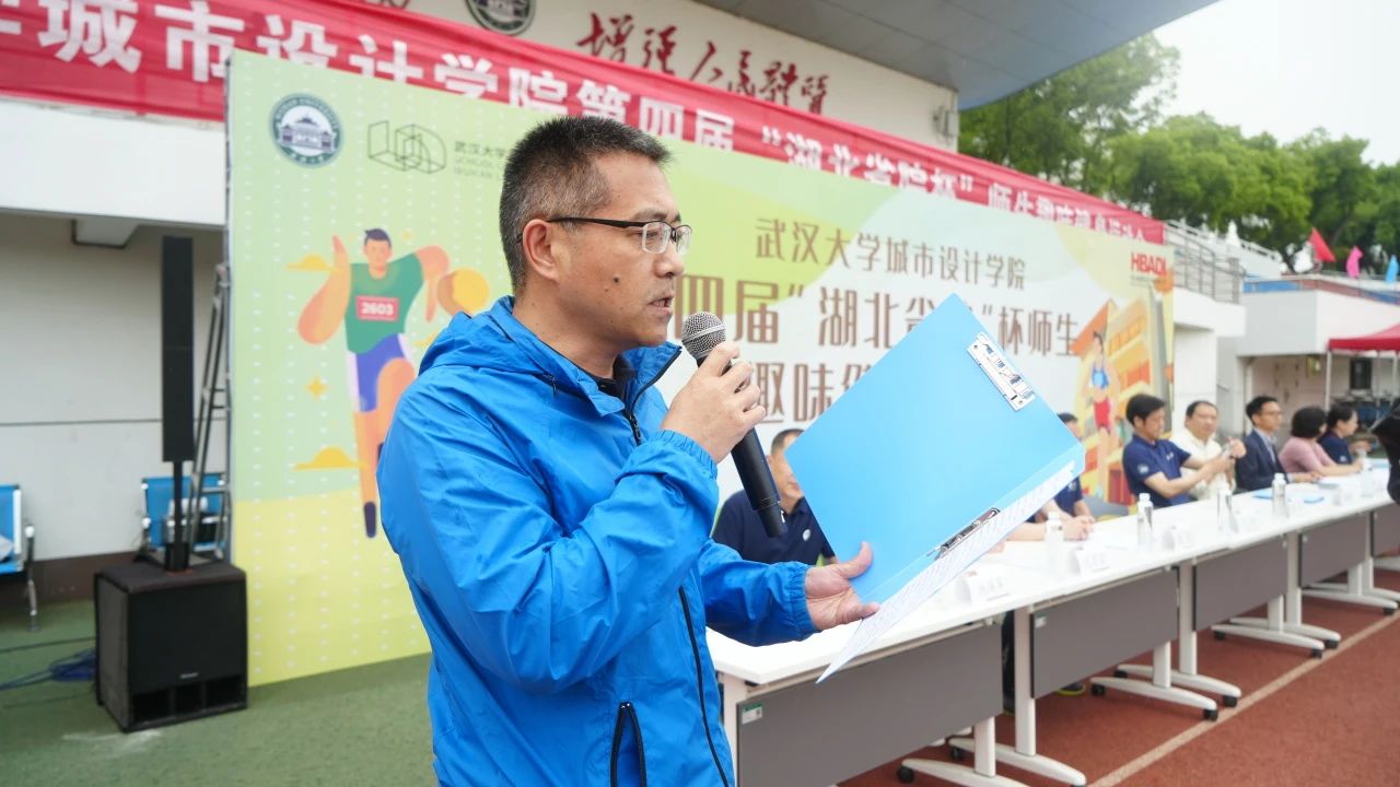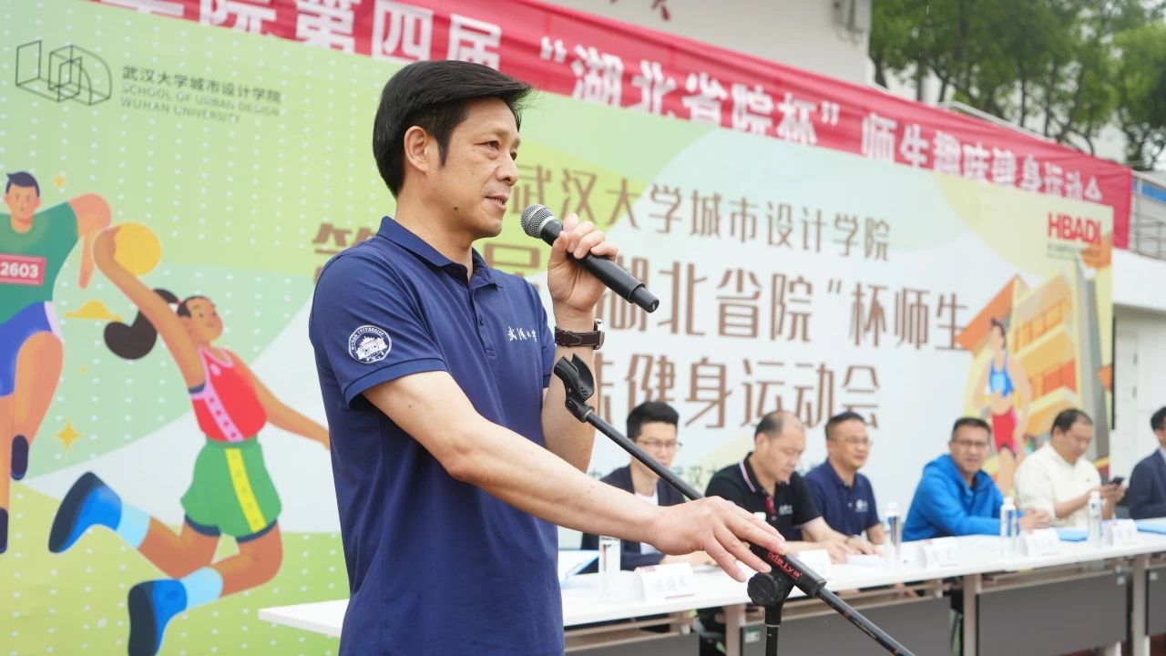 最后由李志刚院长宣布武汉大学武汉大学城市设计学院第四届“湖北省院”杯师生趣味健身运动会正式开幕!
