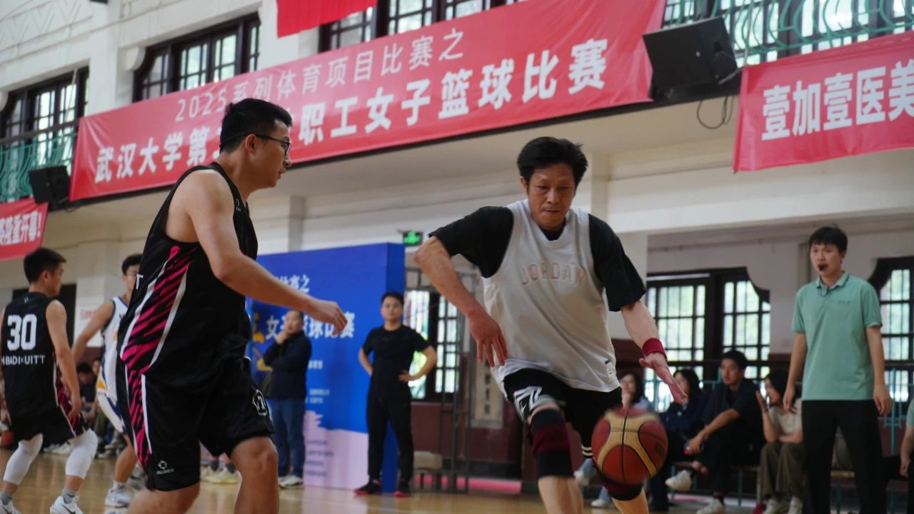 湖北省建院 VS 城市设计学院师生,双方队员列阵相对,篮球在掌心流转,指尖轻推,弧线轻盈掠框而入;错身换防,脚步织就密网。记分牌镌刻的不止胜负,更有掌心相击时迸溅的星火。