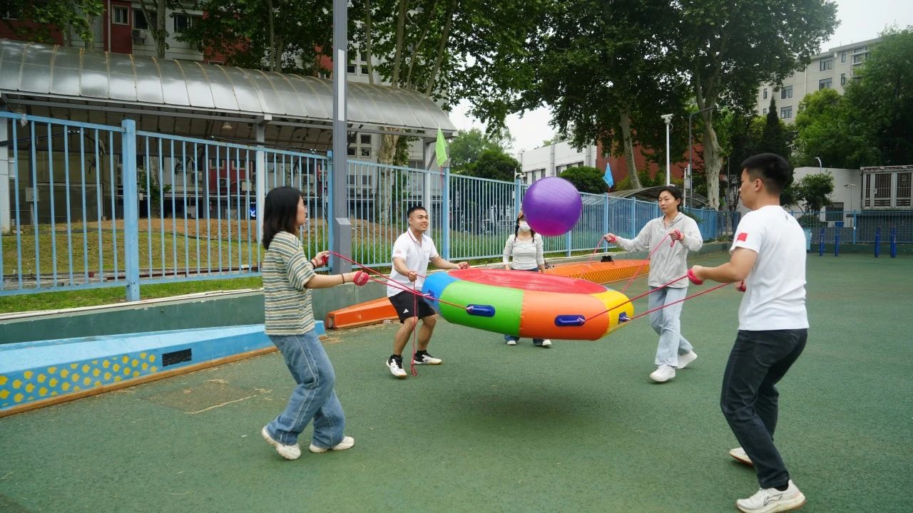 六人在默契接力中完成趣味传输,欢声簇拥间,团队协作愈加默契,跃动的气球载满欢乐,在共进退的脚步中壮大团魂。