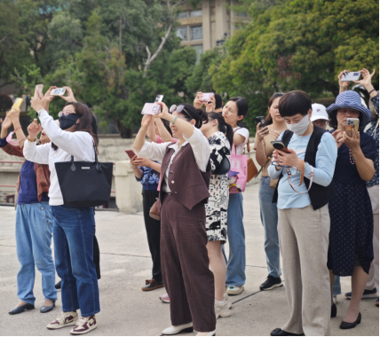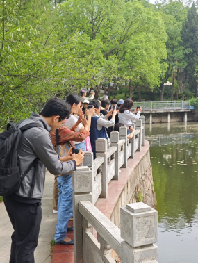 · 樱顶寻韵: 由落英湖拾阶而上,在912操场驻足拍摄,于古朴典雅的樱顶老图书馆,学员们跟随何玉老师的指导,学习如何运用镜头捕捉飞檐画角、龙凤卷云的建筑细节,体会传统建筑构图的韵律之美。