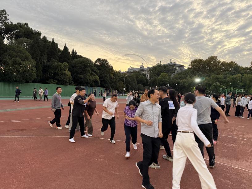 在篮球投篮项目中,张文军书记动作稳健、节奏沉着,多次命中目标,为学院取得亮眼成绩;在跳长绳接力中,老师默契配合,绳起绳落间尽显活力,步伐干脆利落,在桂园操场上赢得阵阵喝彩;在网球掷准比赛中,施焕军副书记动作利落、投掷沉稳,王建军老师更是表现出色,获得全校第 6 名的好成绩,为学院再添亮色。在足球射门项目中,黄经南老师和赵钧一老师以迅猛速度与精准判断连续攻门,展现了城设人不服输、不言败的竞技精神。穿梭接力项目中,我院教工团队齐心协力,互相鼓劲,在操场上奔跑出属于城设的速度与力量。