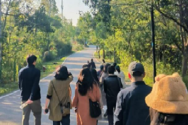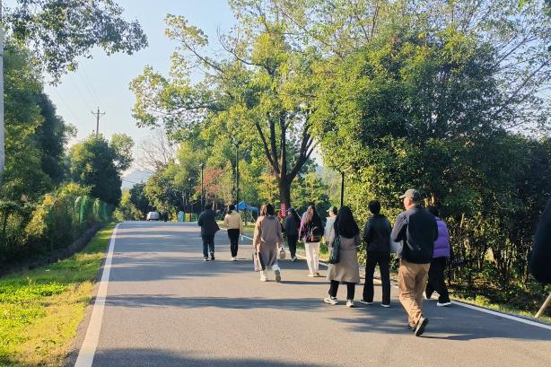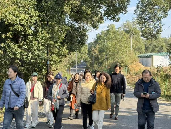 参观完纪念馆后,师生代表沿着青龙山绿道前行,实地感受乡村振兴带来的喜人变化。青龙山绿道是江夏区践行“绿水青山就是金山银山”理念的生动规划实践,全长 30 公里,串联起大花山、青龙山、八分山三大山体。在建设过程中,始终坚守“不砍树、不拆迁、不征地”的生态准则,最大限度保护了山体肌理与森林植被,为乡村生态振兴筑牢了空间基底。师生们徒步于绿道,沿途水清岸绿、村舍悠然,一幅生态宜居的乡村画卷徐徐展开。大家边走边看、边聊边悟,深刻体会到生态保护与乡村振兴的深度融合,认识到党建引领不仅是思想引领,更是行动引领,要将生态保护理念融入乡村振兴的每一步,以实际行动践行绿色发展理念。