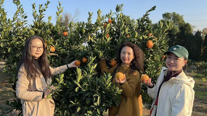 下午,师生代表来到桔园农庄,以劳作的方式开展沉浸式教育实践。农庄负责人结合多年种植经验,详细介绍了本地蜜橘、砂糖橘等品种的特性、生长周期及科学采摘要领。讲解结束后,师生们领取采摘袋,穿梭在枝叶间,亲手摘下一颗颗饱满的橘子,再仔细分拣、装袋。劳动过程中,师生们与当地果农开展深入交流,探讨农村发展新模式,对土地利用、资源融合和发展规划提出了良好专业建议,师生们也深刻体会到“劳动是幸福的源泉”,通过亲身劳作,读懂了“劳动创造价值”的深刻内涵。这次劳动实践不仅锤炼了师生的实干品格,更激发了师生助力乡村振兴的责任感与使命感,引导大家将专业知识与乡村振兴紧密结合,为乡村发展贡献智慧和力量。