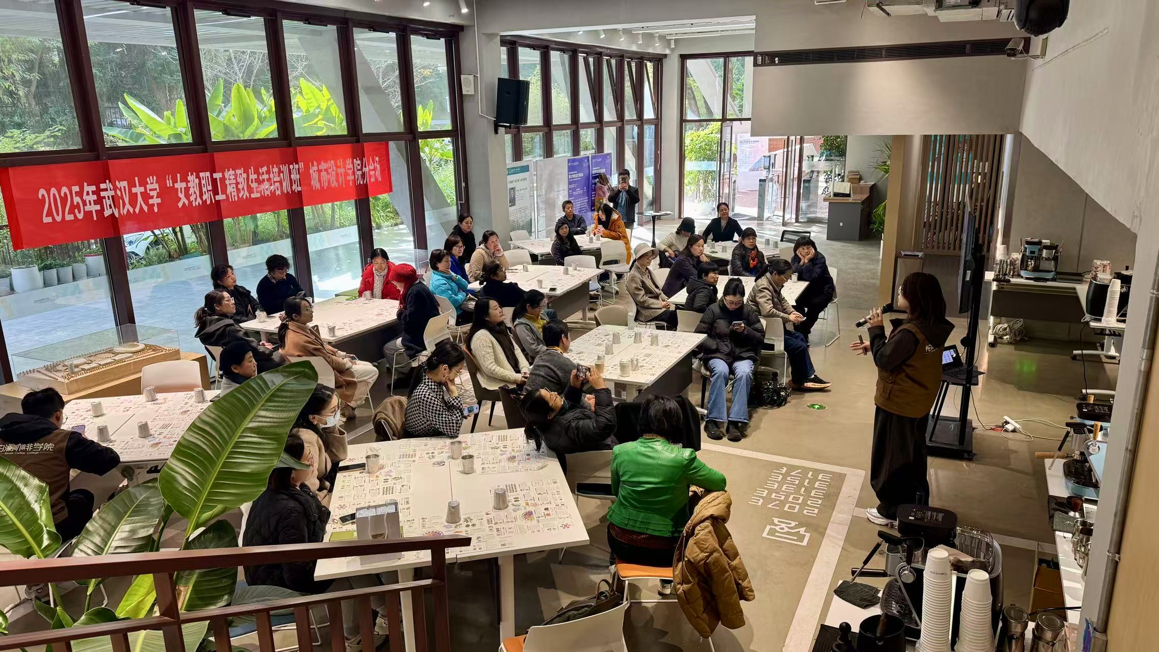 12月27日下午,城市设计学院院馆东厅化身温馨咖啡工坊,2025武汉大学“女教职工精致生活培训班”城市设计学院分会场之咖啡拉花培训活动在此启幕。来自社会学院、动机学院、水电学院、土建学院以及城市设计学院的 50 余名女教职工齐聚一堂,在专业咖啡师指导下解锁拉花技艺,于醇香中舒缓压力、感受生活美学,共度充满创意与欢笑的午后时光。