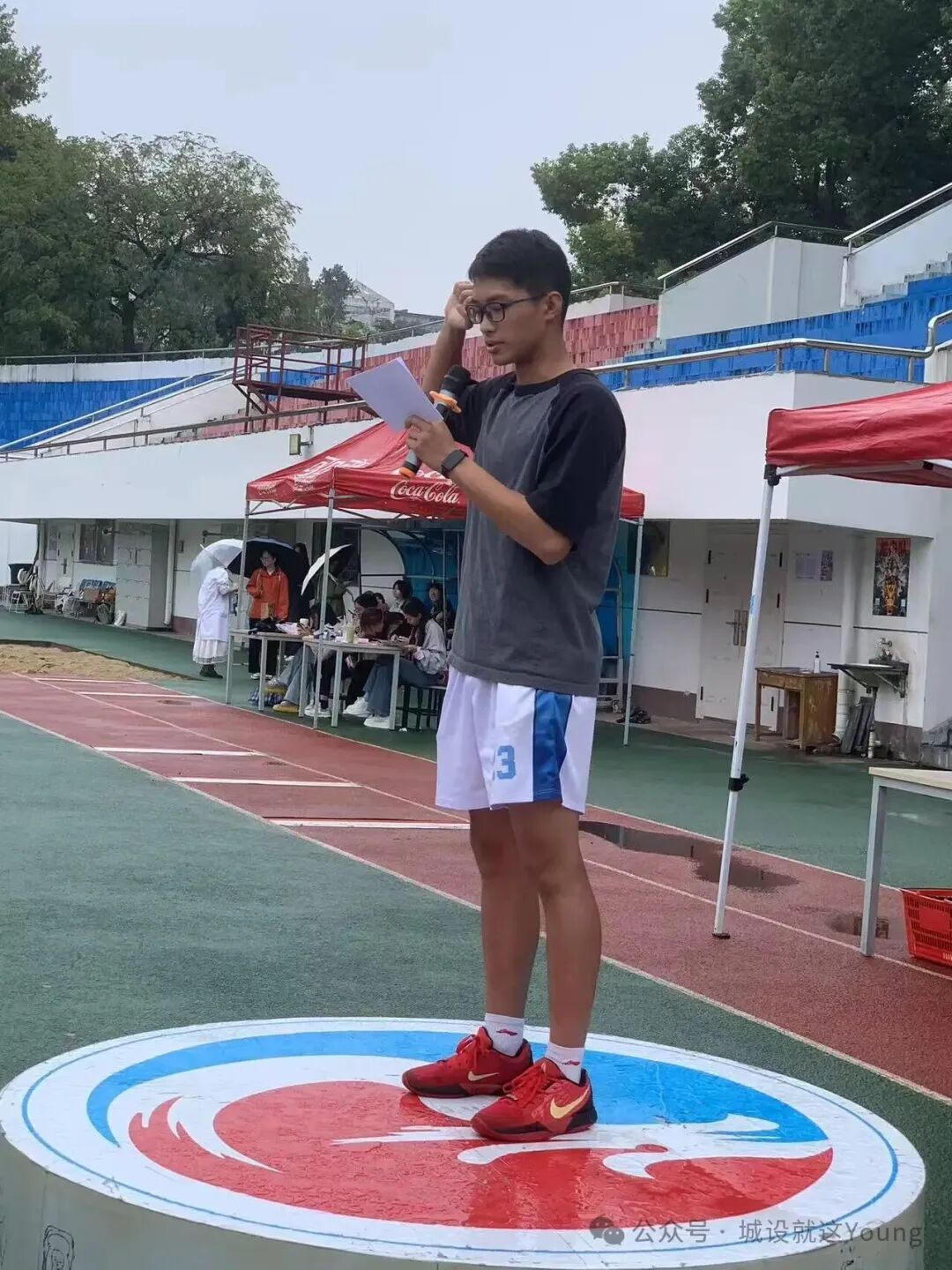 10月16日下午13:50,期待的秋日盛会与一场秋雨不期而遇。淅沥的雨声中,我院2025年秋季运动会于工学部操场举办,师生们如期赴约。尽管天公不作美,运动员们和志愿者依然整装到场,安静准备。