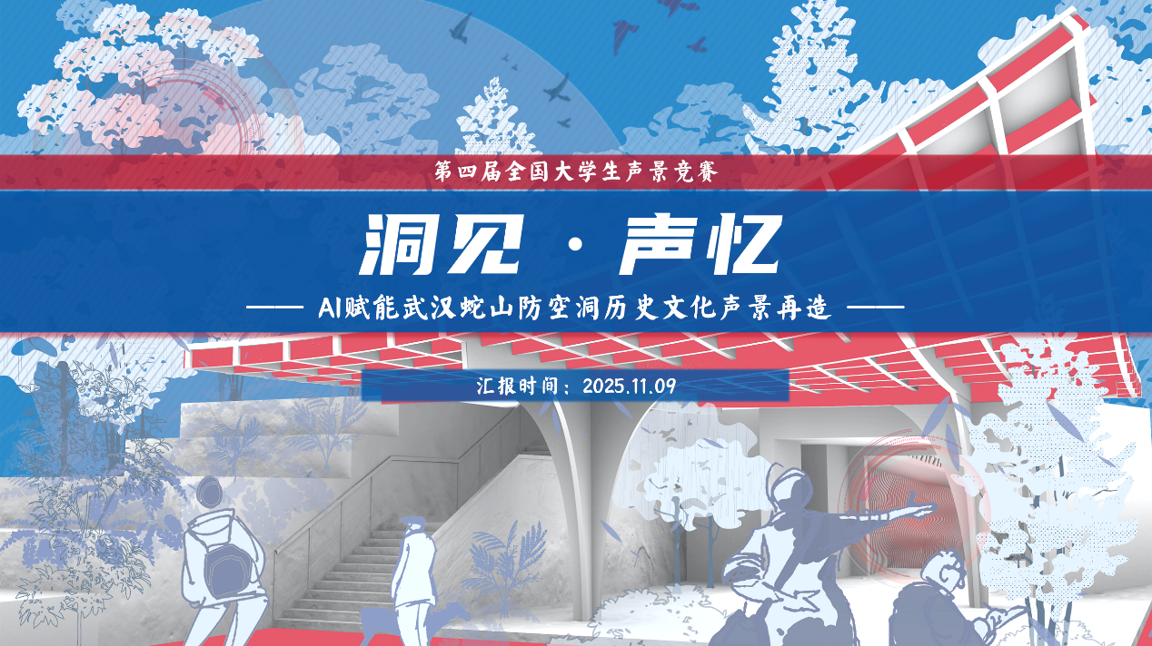 20251117日,第四届“全国大学生声景设计竞赛”获奖名单正式揭晓。我院参赛作品《洞见·声忆——AI赋能武汉蛇山防空洞历史文化声景重塑》历经初审与终审答辩,最终荣获二等奖。该作品由黄凌江、张娅薇两位老师指导,周璇、叶丰源、刘雅歆、衡佳琪四位同学合作完成。