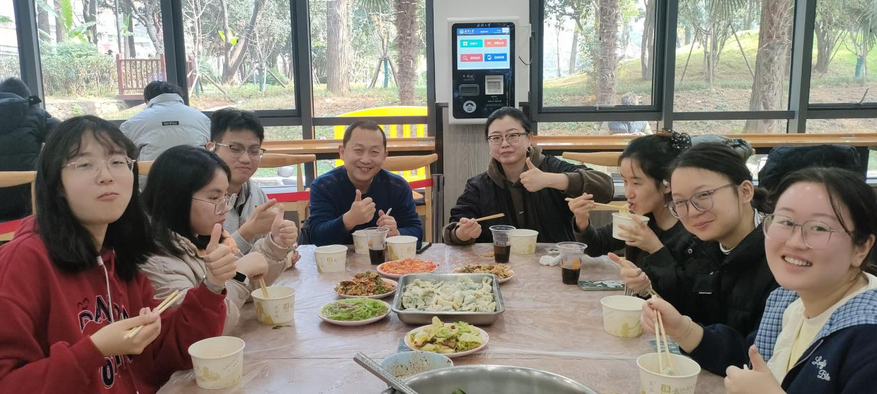饺子下锅,热气蒸腾。等待间隙,师生围坐畅谈,从专业学习到生活趣事,从传统习俗到校园新风,话语亲切,气氛融洽。不多时,一盘盘热气腾腾的饺子端上餐桌,大家品尝着自己的劳动成果,白菜猪肉、韭菜鸡蛋等馅料香气四溢,暖意从舌尖沁入心底。
