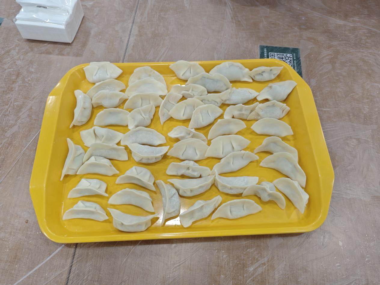 活动中,退休教师与学生党员结对分组,动手包饺。老教师们手法娴熟,动作利落,饺子迅速成型,引得同学们连连赞叹。有老师笑言:“还没活动开身子,饺子皮倒先不够了!”大家一边示范,一边耐心指导同学们捏褶、包馅;同学们也创意频出,在传统样式上变化出新造型。一张张面皮在指尖传递,不仅是饺子的成型,更是技艺与情感的交接。现场笑语声声,暖意融融,支部共建在协作中生根发芽。