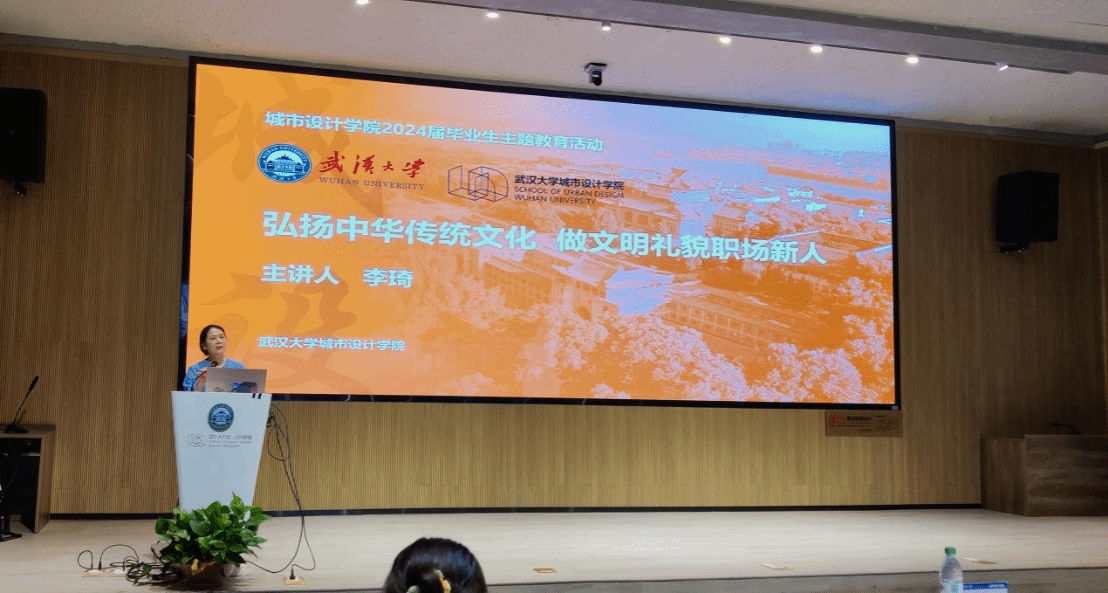 为深入学习宣传党的二十大精神,全面贯彻党的教育方针,落实立德树人根本任务,弘扬中华优秀传统文化,培养文明守礼的时代新人,切实提升毕业生综合素养,帮助其规范自我,以更好适应未来职场之路,城市设计学院优秀2024届毕业生主题教育活动——“书记讲党课”暨2024届毕业研究生党员教育大会于6月17日下午14:30在专教楼报告厅召开。院党委副书记李琦为全体毕业研究生党员讲授了以“弘扬中华传统文化,做文明礼貌职场新人”为主题的党课,会议由院研究生辅导员叶婧杰主持,城市设计学院全体究生党员及2024届全体毕业研究生与会。