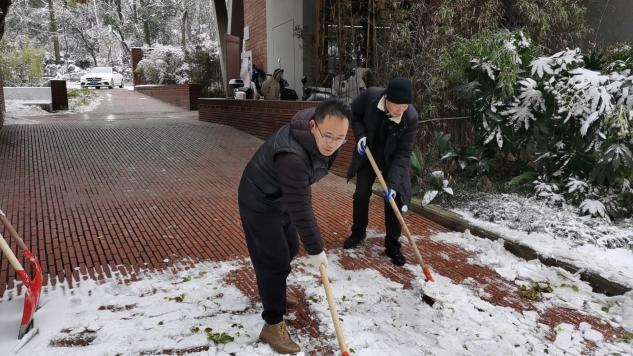 风雪无情,人间有爱。志愿者的行动彰显了党员教职工的责任担当,也展现了城市设计学院团结协作的精神风貌。