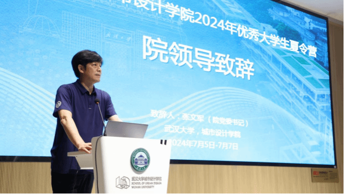 张文军书记代表学院向参加本次夏令营的全体同学表示热烈欢迎,他表示,武汉大学城市设计学院始终致力于培养具有国际视野和创新精神的人才,鼓励营员们在夏令营中积极交流思想,激发灵感,共同探索城市设计的未来,希望营员们在这两天的活动中留下美好的回忆,期待未来营员们进入武汉大学城市设计学院学习深造,为武大城设的发展注入新的生机和活力。