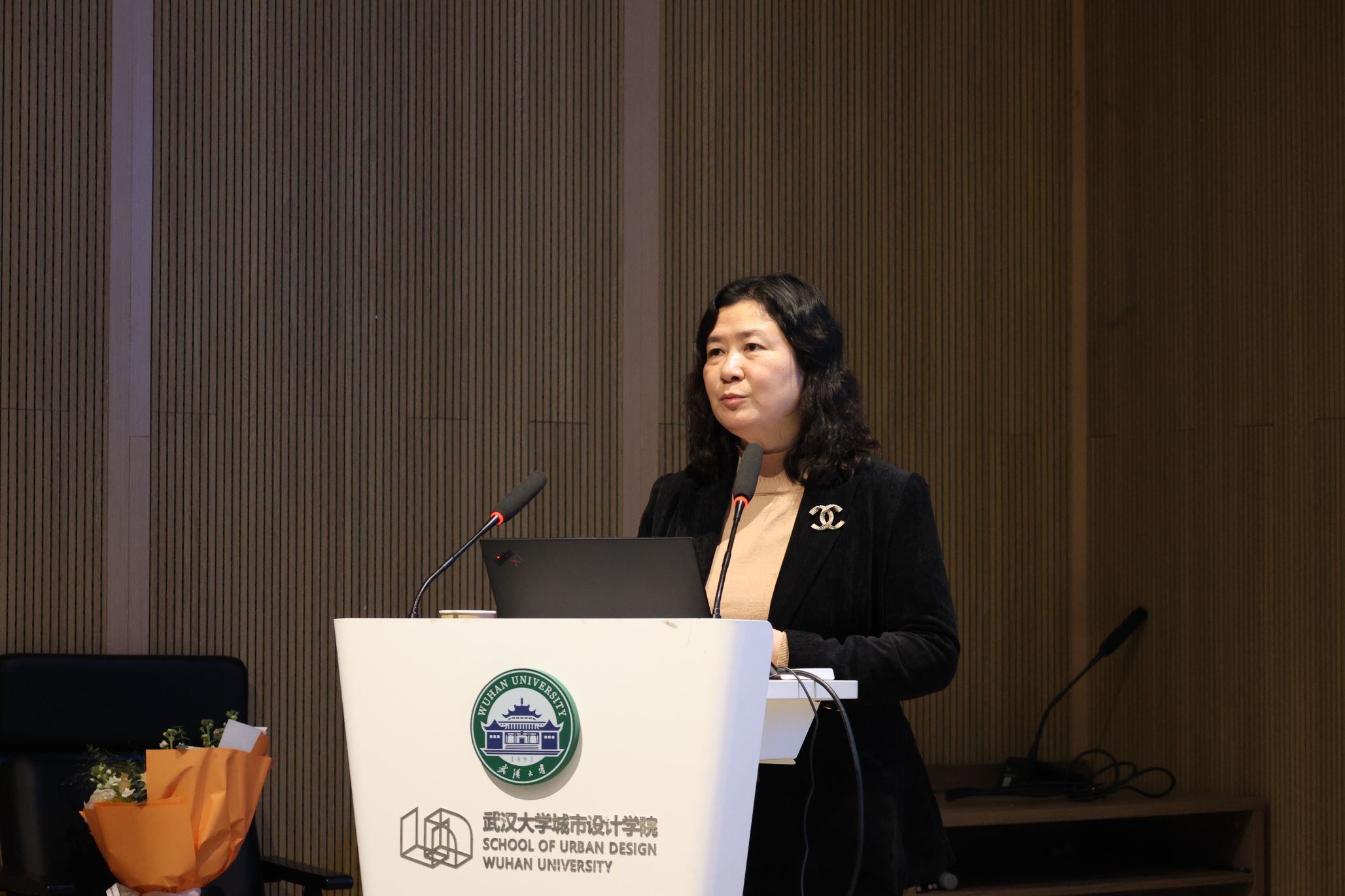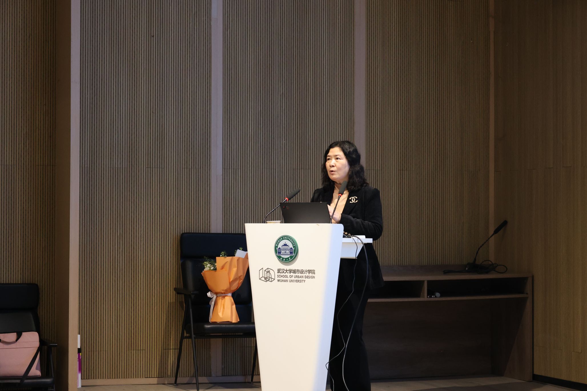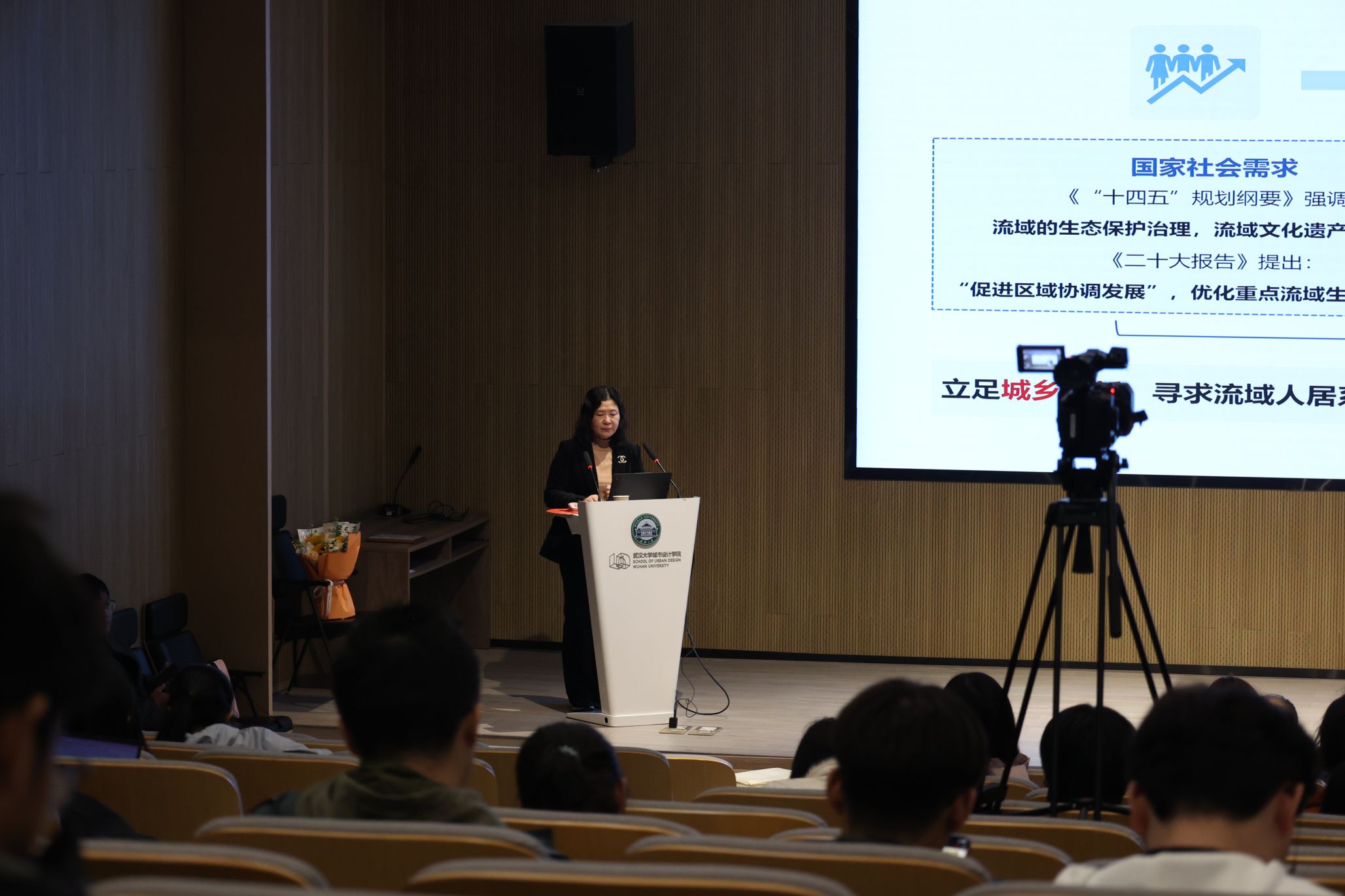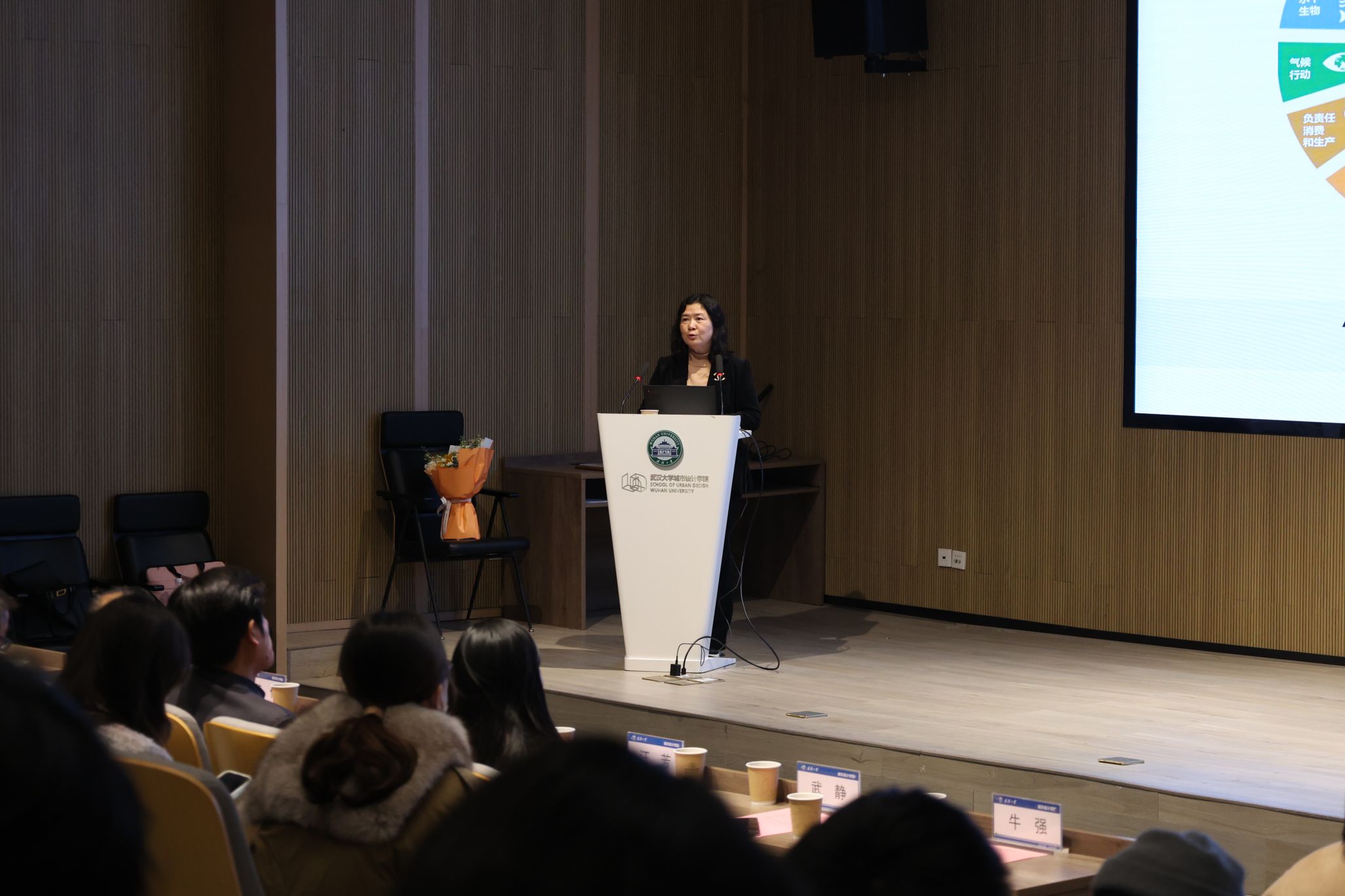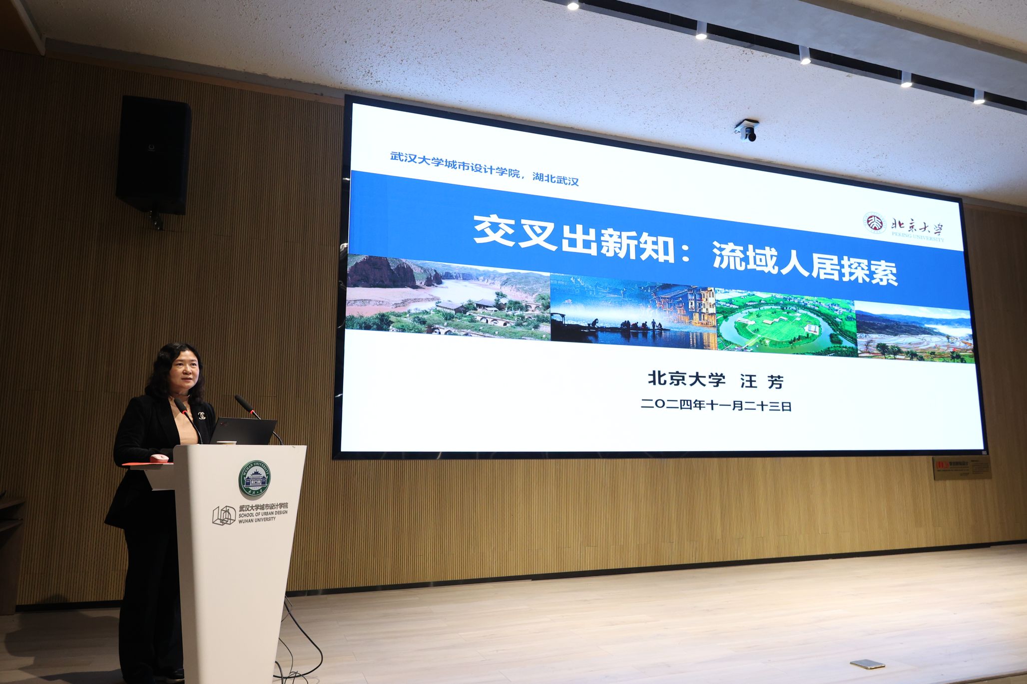 2024年11月23日晚18:30,武汉大学城市设计学院《大师哲思》课程在专教楼报告厅正式开讲。本次讲座由北京大学二级教授、博雅特聘教授汪芳老师主讲,武汉大学城市设计学院党委书记张文军以及多位教师代表受邀出席,课程由院长李志刚教授主持。