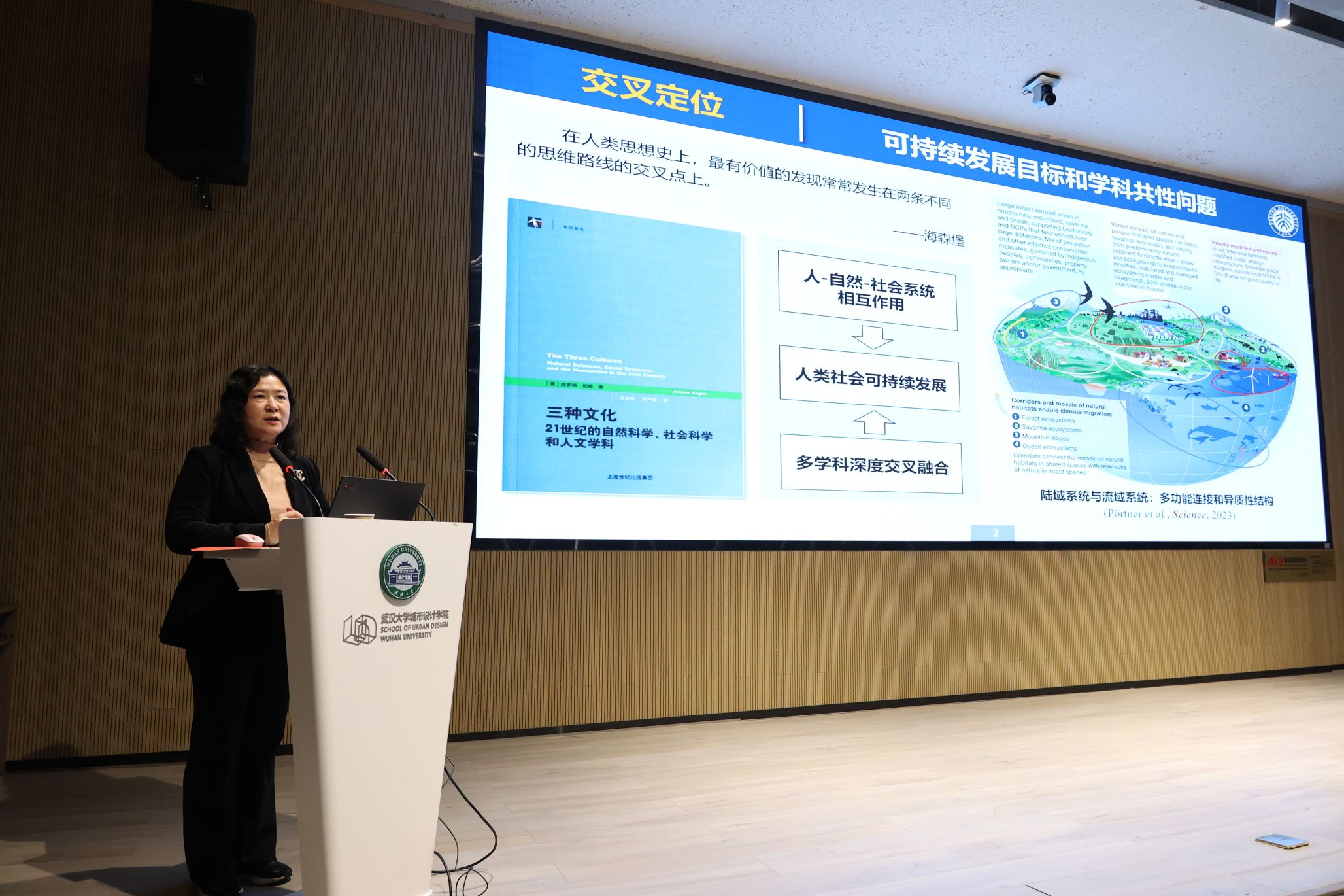 紧接着汪芳教授为我们讲述了城乡规划的交叉定位与创新发展是基于北京大学的综合性学科土壤,以流域人居系统(流域系统、人居系统)为研究契机,而该两个系统研究的理论支撑为地方适应性规划理论。