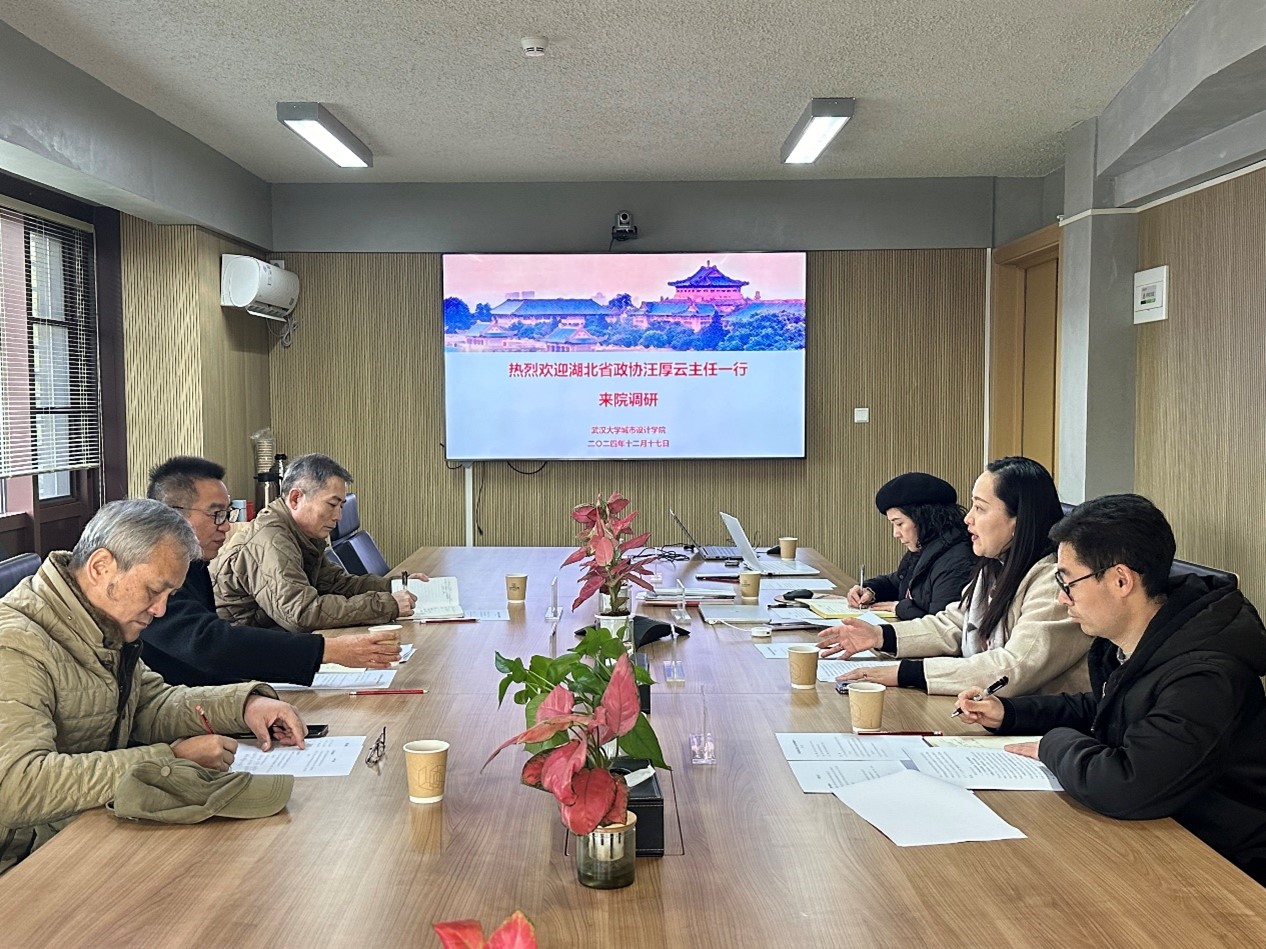 12月17日下午,省政协民族和宗教委员会专职副主任汪厚云、省政协委员斯龙平一行走访联系省政协委员、武汉大学城市设计学院副院长武静。武汉大学统战部民主党派工作办公室主任姬建建、武汉大学城市设计学院党委副书记李琦参加活动。