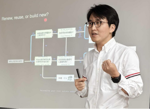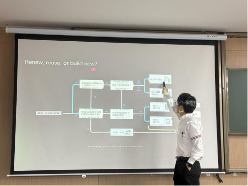 讲座伊始,王浪先生展示了城市更新判断流程图,它为城市更新提供了清晰的决策框架。他指出,在面对既有建筑更新需求时,需要在更新(Renew)、再利用(Reuse)和新建(Build New)之间作出科学选择,而这一过程需要综合考虑历史价值、功能适配、环境条件及经济效益等多个因素。他通过流程图结合具体案例分析,引导学生从场地历史背景、当下使用需求和城市文脉的基准出发,评估各选项的优劣,从而明确在不同城市环境中应采用的最优更新路径。