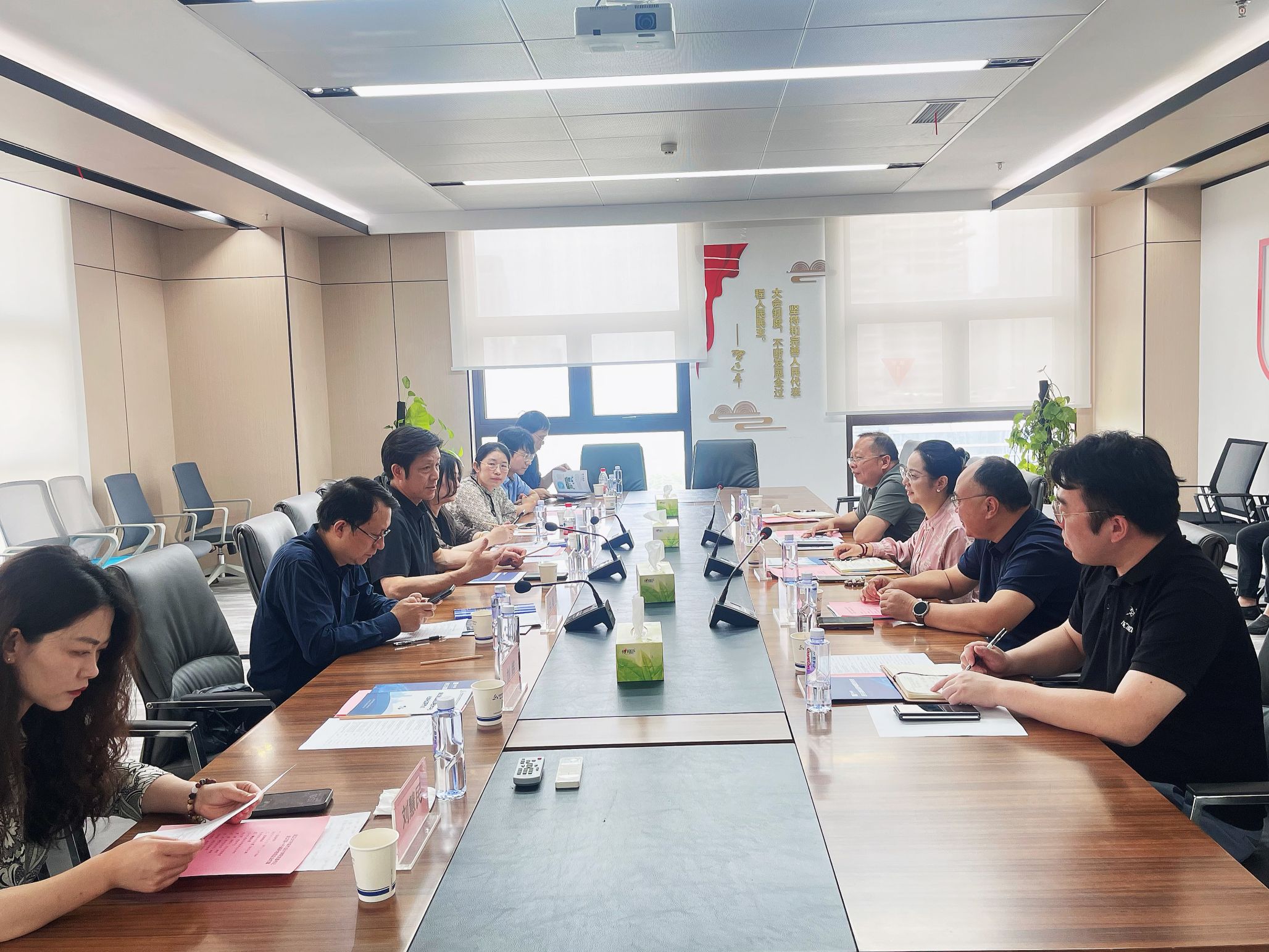 调研首站为华发国际企业大厦。学院一行参观了地理信息科技领域的领先企业展厅,并与企业代表展开了深入讨论,自然资源湖北省卫星社会化应用节点主任及湖北泛星科协主席华中雄、武汉易米景科技有限公司董事长高凯等企业领导参与研讨。会上,企业代表就地信产业发展现状、遥感时空数据处理与应用一体化建设情况进行了全面介绍。同时,双方围绕如何发挥高校科研优势与企业产业资源,推动地信数据与技术与学院数字化与信息化专业优势深度融合展开深入交流。双方一致认为,通过签订具体项目合作协议、开展校企联合培训等方式,将充分发挥各自的优势,实现资源共享、互利共赢,深化校企协同育人机制,共同促进产学研融合取得新突破。