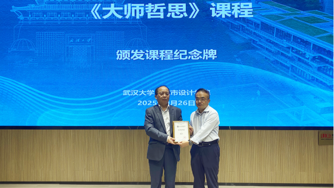 武汉大学城市设计学院2025《大师哲思》课程第二讲于9月26日18:30在专教楼报告厅正式开讲。课程第二讲邀请到华中科技大学建筑与城市规划学院二级教授黄亚平老师主讲,武汉大学城市设计学院院长李志刚教授、党委书记张文军以及多位学院领导、教师代表受邀出席。武汉大学城市设计学院副院长武静教授主持讲座,院长李志刚教授向黄亚平教授颁发《大师哲思》课程纪念牌。