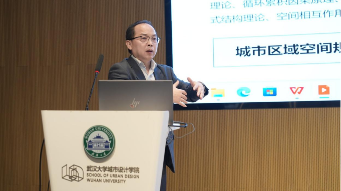 在国土空间规划改革方面,黄教授提出应突出“底线管控+空间协同”双轮驱动,统筹生态安全、农业保障与城镇发展三大空间,完善跨层级、跨区域的协同治理机制。他还以武汉与黄冈同城化、粤港澳大湾区沿海走廊建设为例,说明要素链接与制度创新对区域融合的推动作用。