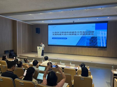 院长李志刚作开班动员并以“认真学习贯彻中央城市工作会议精神,全面构建大设计高质量人才培养体系”为题作主题报告。他首先围绕中央城市工作会议精神进行了系统解读,详细介绍了会议背景、核心要义及其对学院发展的指导意义,特别是对会议提出的七项重点任务作了深入阐述,并结合武汉城市工作的实践要求进行了延伸阐释。在回顾学院工作时,他总结了近期在学科建设、人才培养、社会服务等方面取得的积极成效。他指出,经过多年努力,学院已构建起建筑、规划、景观、设计四位一体的完整学科格局,当前发展态势稳中向好,正处于提质进位的关键阶段。面对新形势新要求,他强调,学院下一步将朝着“大设计”深度一体化的方向全面推进,强化学科交叉融合,增强整体创新能力。围绕新学期工作部署,他要求全体骨干教师深刻把握中央城市工作会议精神,主动对接国家战略和区域发展需求,将个人成长和团队建设融入学院发展大局,持续推动人才培养、科学研究与社会服务三者协同并进,为实现学院高质量内涵式发展注入新动能。