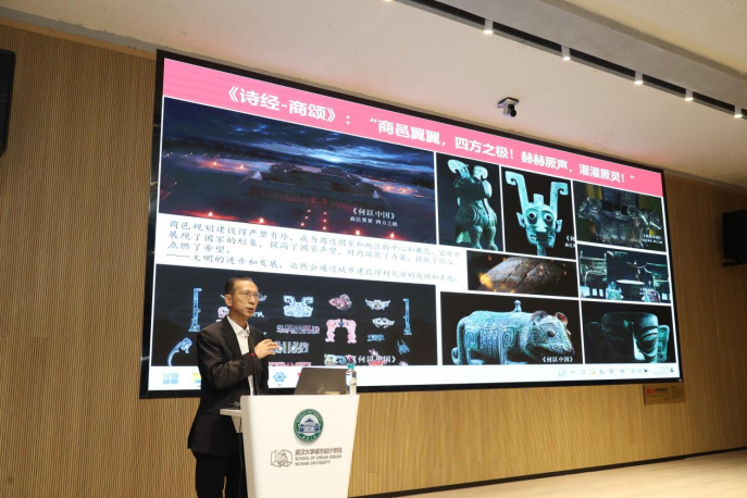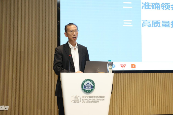 武汉大学城市设计学院2025年《大师哲思》课程第四讲于9月17日19:00在专教楼报告厅正式开讲。课程第四讲邀请到住房和城乡建设部原总经济师、中国城市规划学会理事长、全国工程勘察设计大师杨保军大师主讲,武汉大学城市设计学院院长李志刚教授以及多位学院领导、教师代表受邀出席。武汉大学城市设计学院副院长武静教授主持讲座,院长李志刚教授向杨保军大师颁发《大师哲思》课程纪念牌。