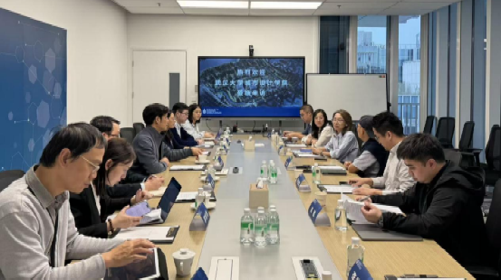 随后,调研队与香港科技大学(广州)第一书院署理院长江斌教授、城市治理与设计学域乐阳教授等专家学者展开座谈交流活动。座谈会上,乐阳对城市治理与设计学域做了简要介绍,江斌对“城市技术与治理”(Urban Tech & Governance)硕士项目的筹建进行了详细介绍。在其它交流环节,港科广城市治理与设计学域助理教授李超啸、吴偲、李秋蒙,城市治理与设计学域副科长姜芷荃,全球事务处战略事务代表徐阿龙分别就国际化办学成效与经验、课程设置、产学研融合等方面进行详细介绍。