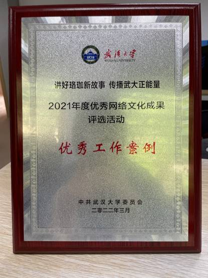 (通讯员:陶翊婷 赵晓雪)3月25日,我校召开2022年宣传思想工作布置会。会上颁发了武汉大学2021年度优秀网络文化成果奖。我院作品《武汉大学录取通知书设计比赛网络宣传案例分析》(作者:2018级城乡规划学专业赵晓雪 2019级建筑学专业顾笑言,指导老师:陶翊婷)成功入围,并被授予“优秀工作案例”成果奖。