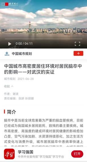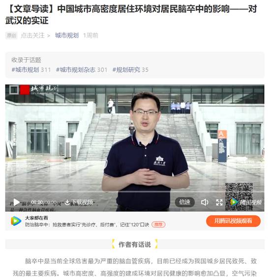 我院谢波副教授与李志刚教授在健康城市、建成环境与居民健康关系研究方面取得重要进展,围绕城市居民脑卒中患病风险分布、建成环境对居民脑卒中的影响和作用机制,提出了更为精准的疾病风险测度方法,构建了完善的建成环境与疾病关系的理论框架。论文在规划TOP期刊《城市规划》发表,并被中国城市规划学会推荐至“学习强国”报道。