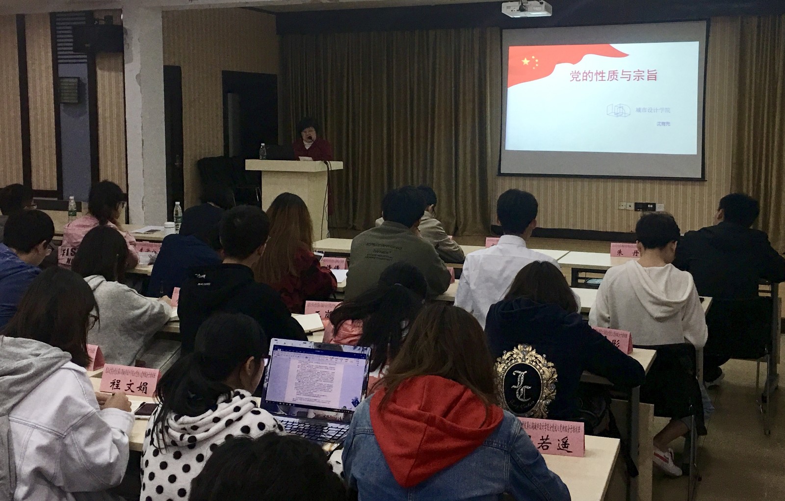 开班式结束之后,沈有先副书记为入党积极分子进行了党课第一讲 “党的性质和宗旨”。她以党章为蓝本,引入多段经典视频,有理有据有节地深入阐述了中国共产党的性质和宗旨,深入剖析中国共产党多年来的实践经历,阐述了中国共产党多年来的理论创新,并介绍了习近平新时代中国特色社会主义思想中对党的性质和宗旨的进行的不断完善和总结,结合学院专业特色,为同学们讲授了生动的一课。