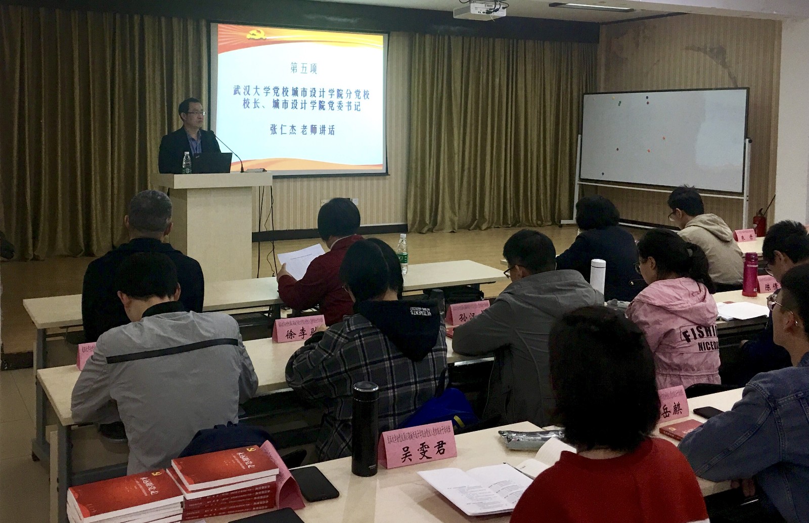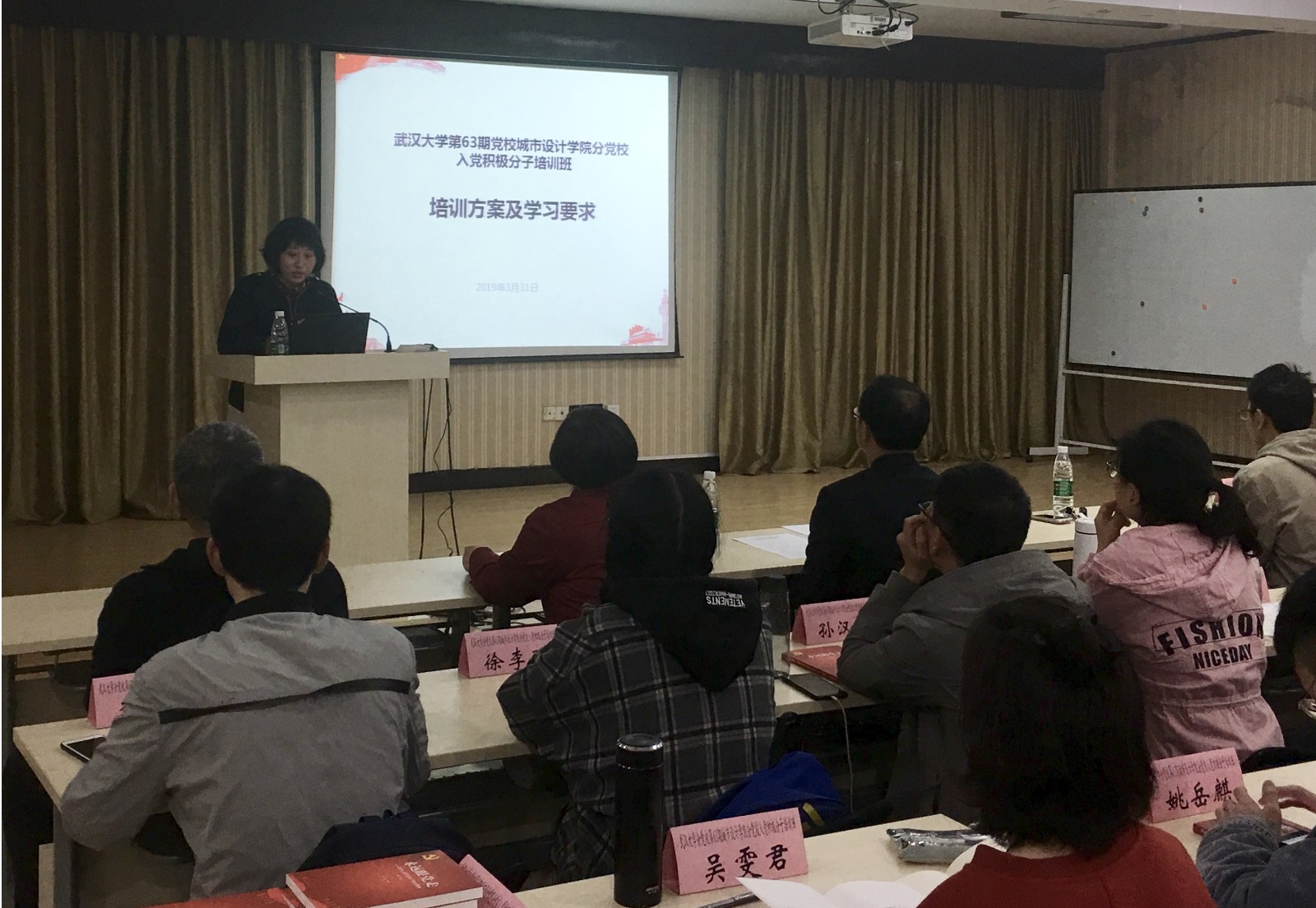 2019年3月31日晚,武汉大学党校第63期入党积极分子培训班暨第二十二分党校城市设计学院开班仪式在工学部明珠园四会议室举行。武汉大学党校城市设计学院分党校校长、城市设计学院党委书记张仁杰、党委副书记沈有先、党委副书记匡松、分党校班主任汪正慧出席了开班仪式,开班仪式由学院党委副书记匡松主持。