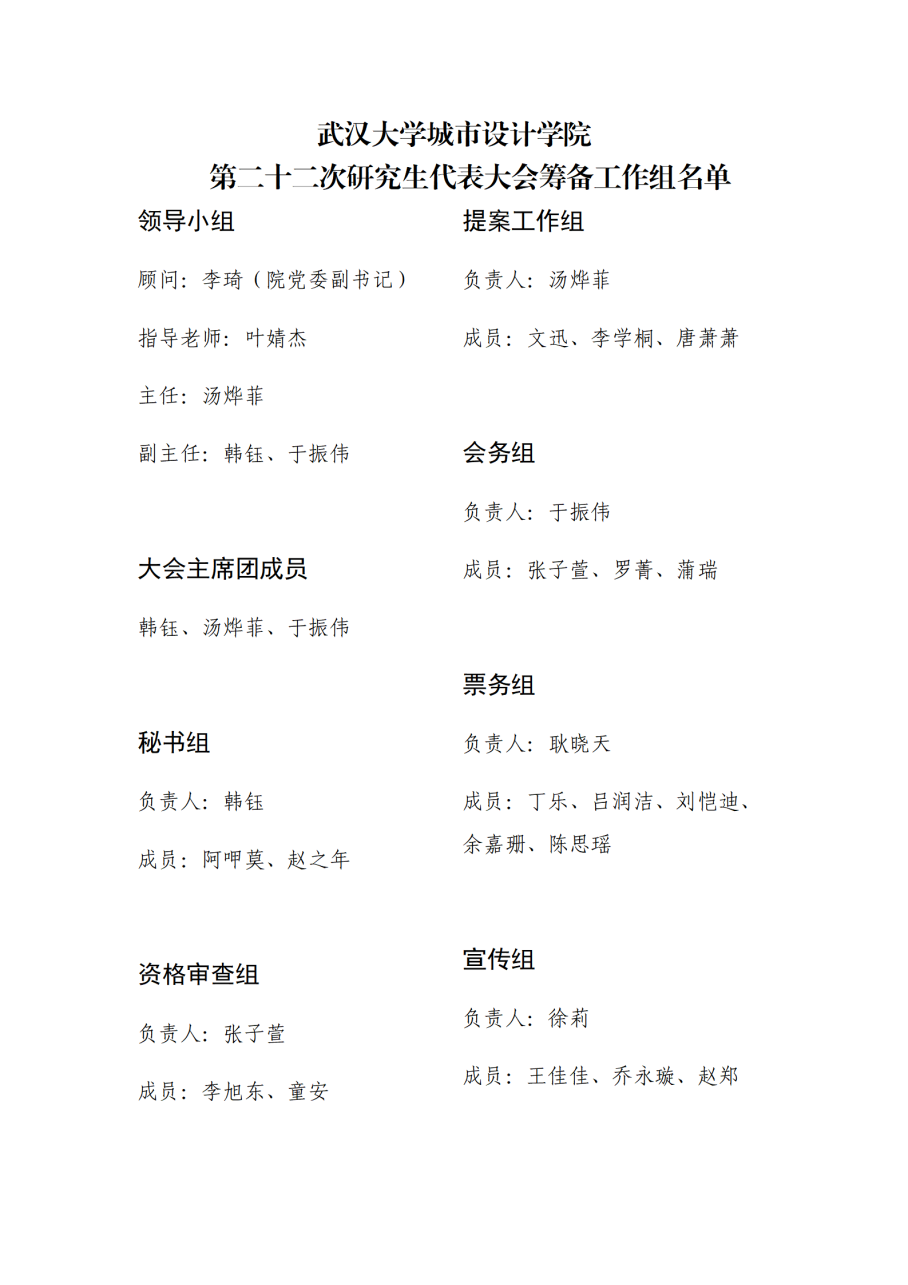 武汉大学城市设计学院第二十二次研究生代表大会筹备工作组