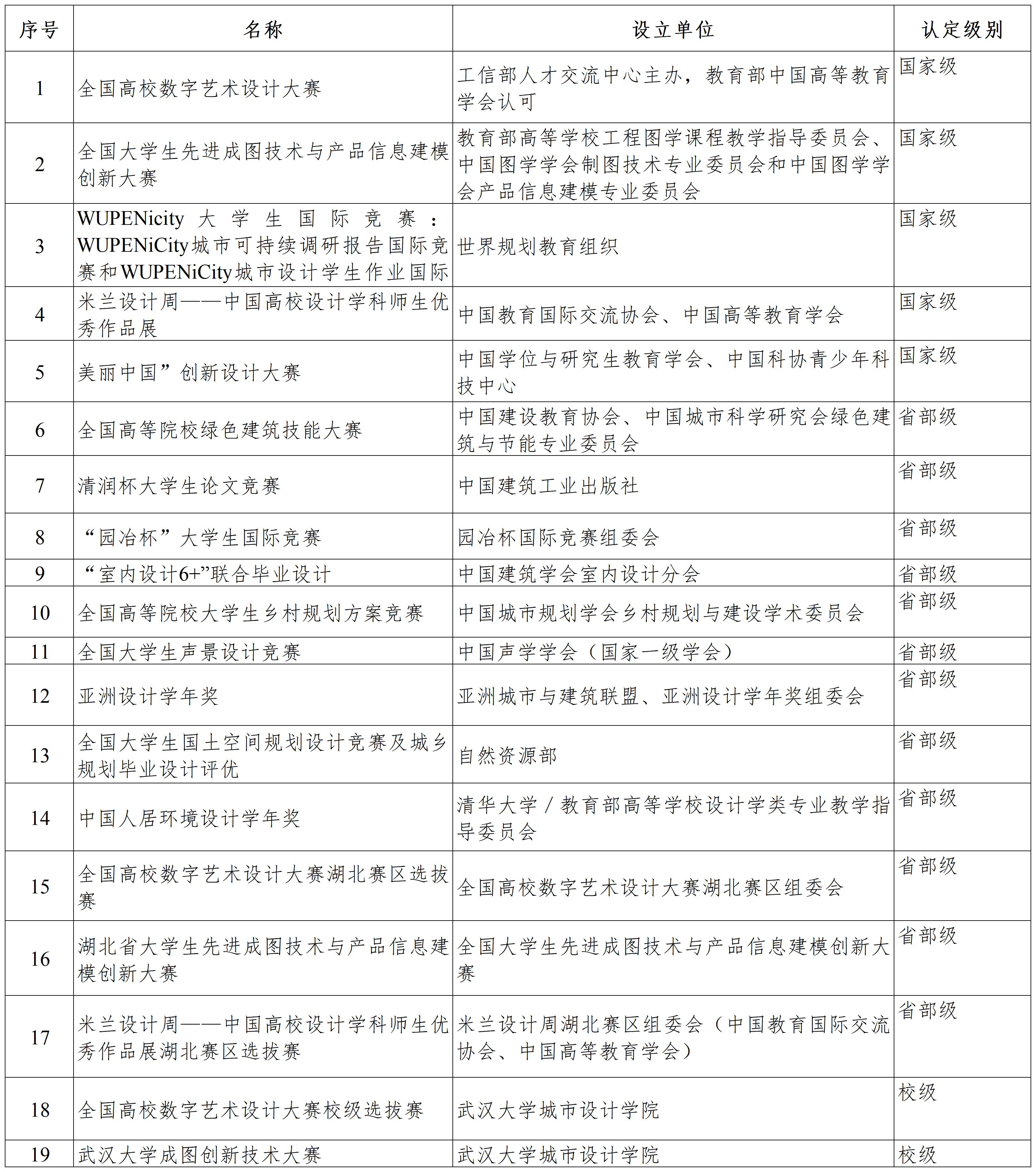 附表3学科竞赛认定信息(城市设计学院)一览表