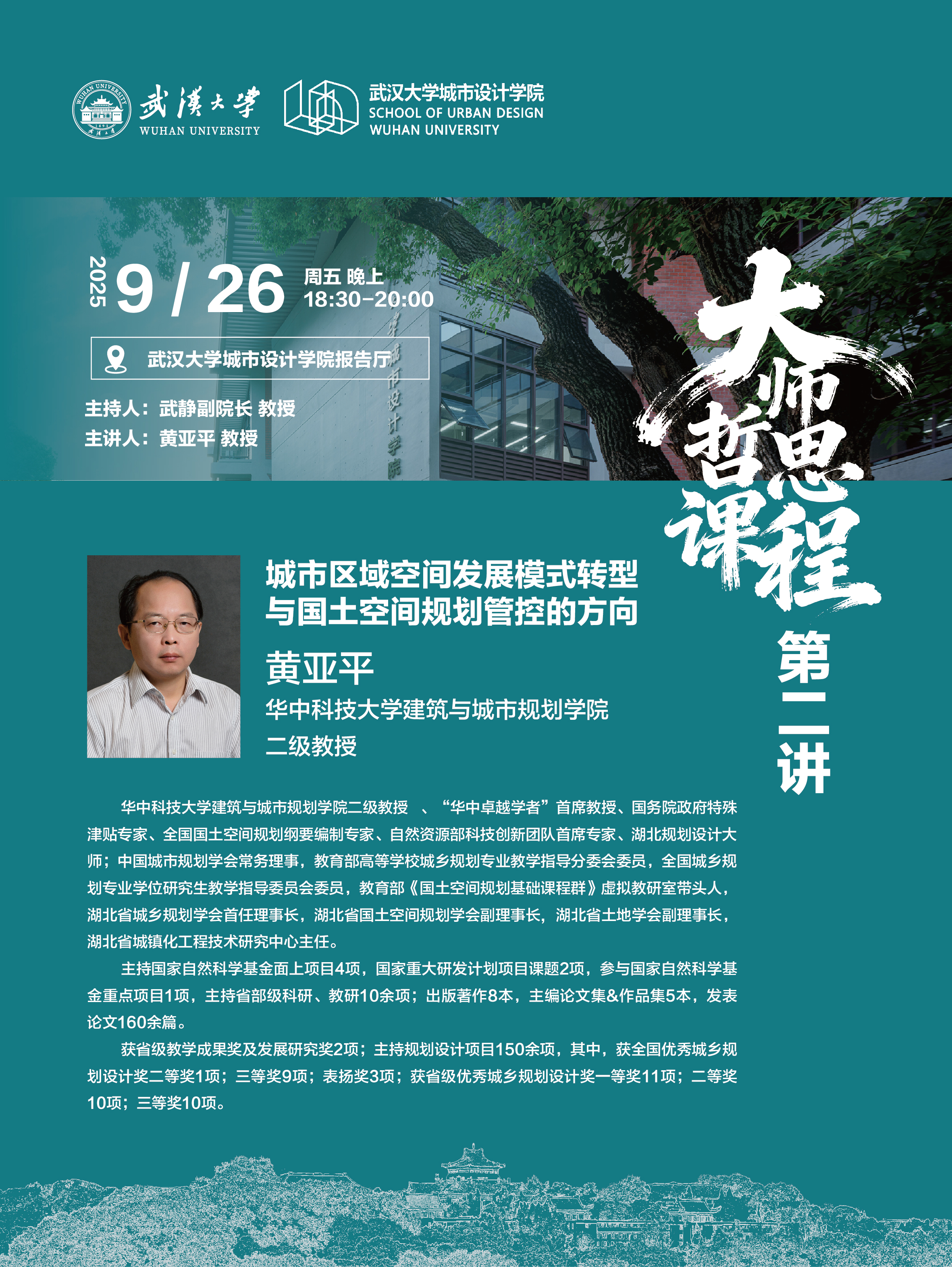 2025【大师哲思】课程第二讲介绍——黄亚平教授:城市区域空间发展模式转型与国土空间规划管控的方向